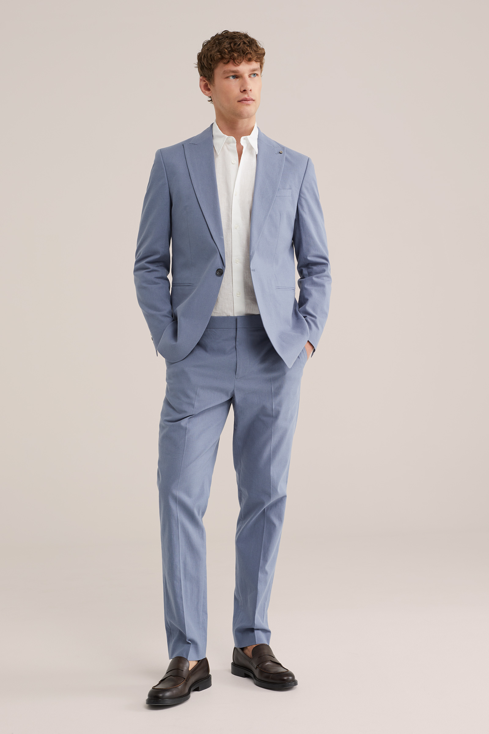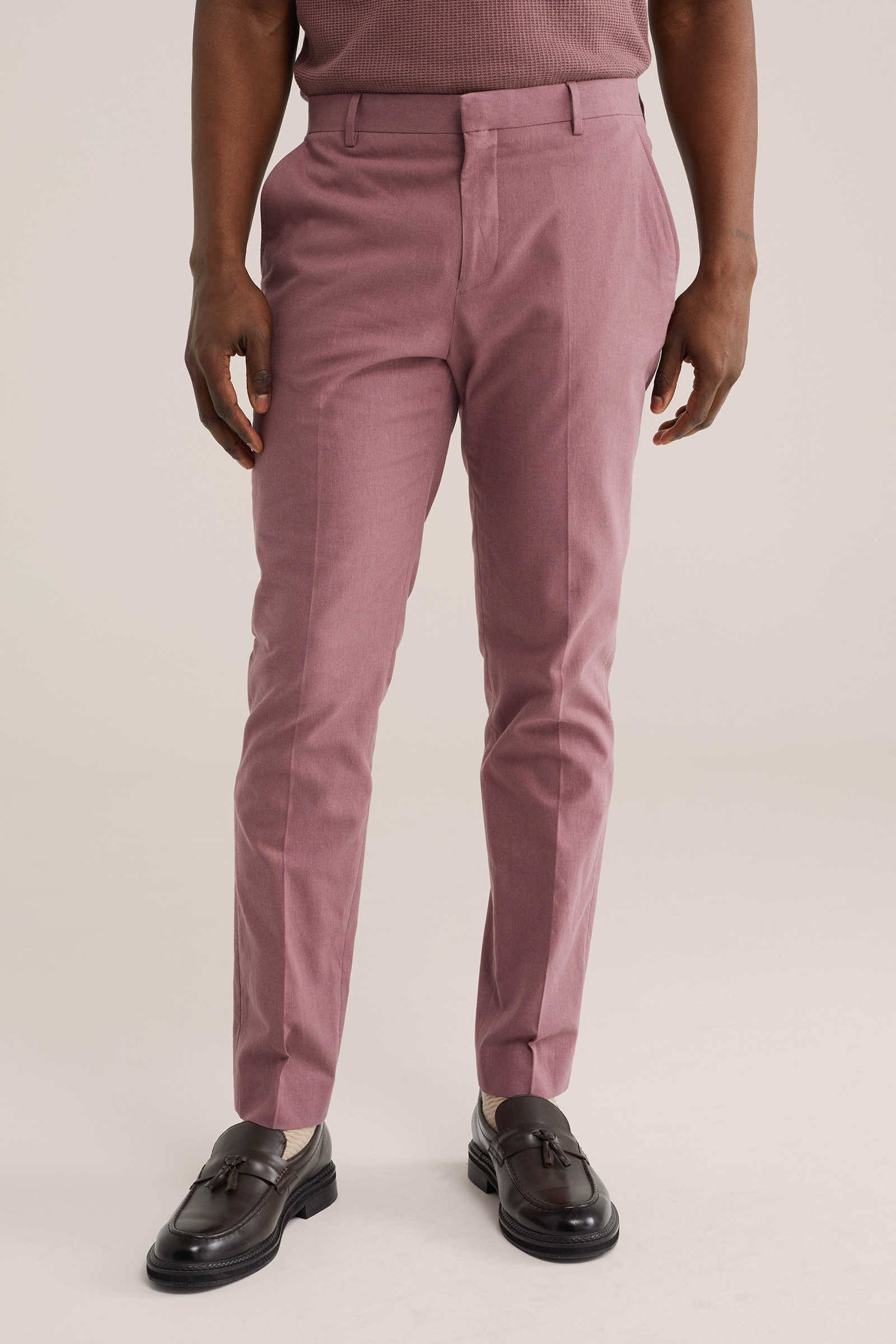 Heren slim fit pantalon van linnenmix