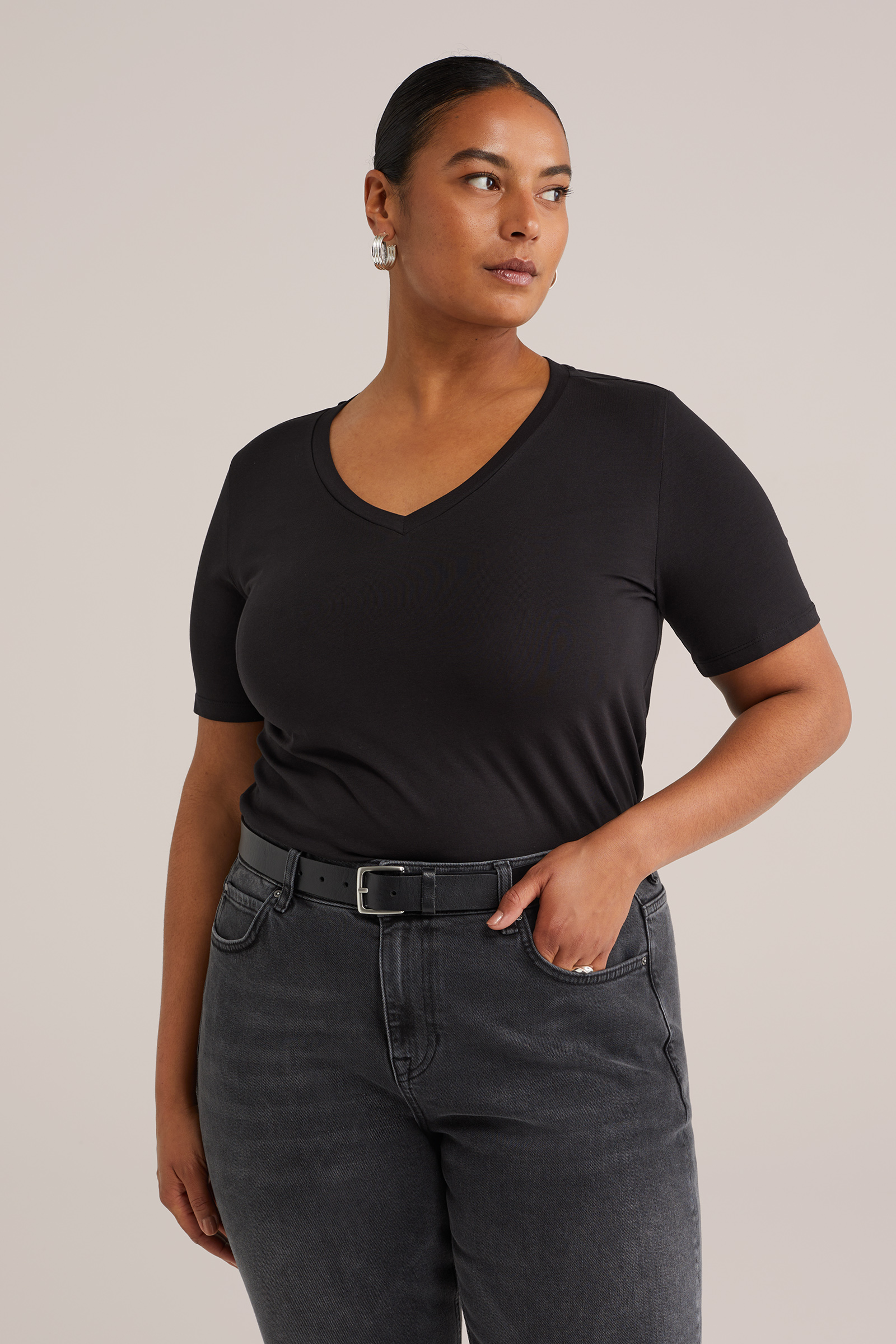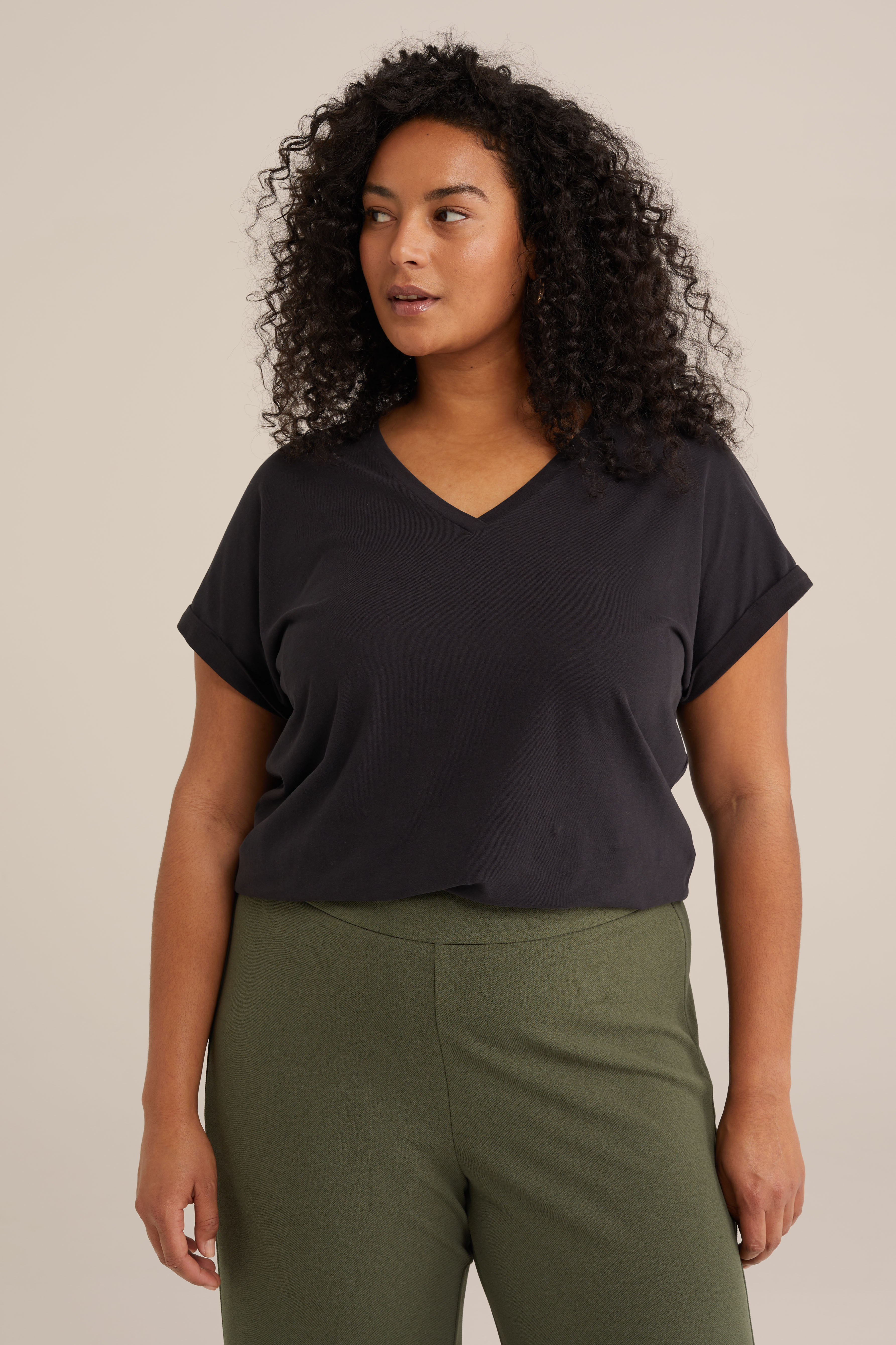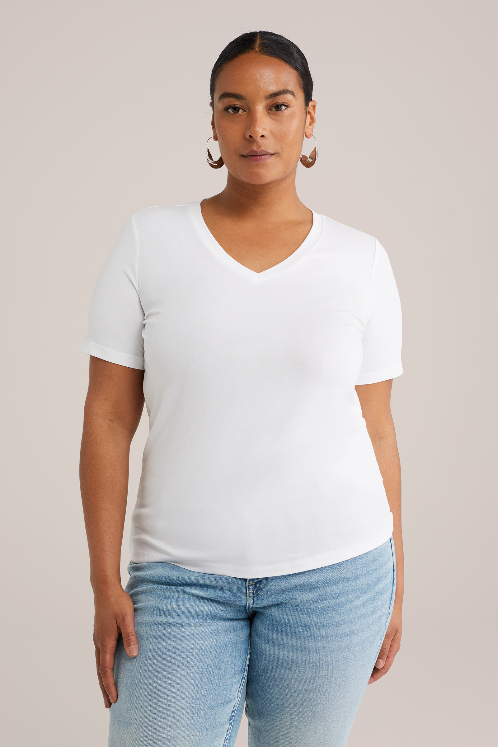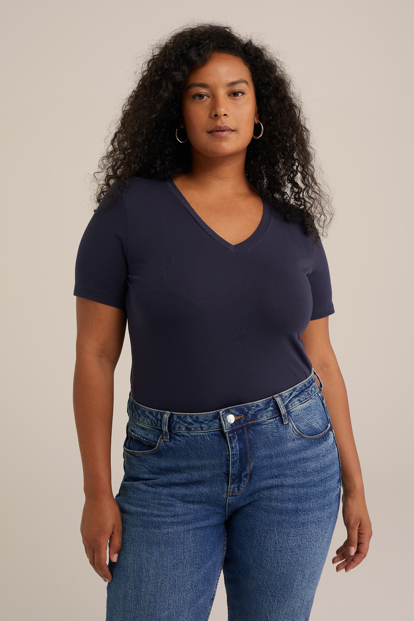 Dames T-shirt met V-hals - Curve