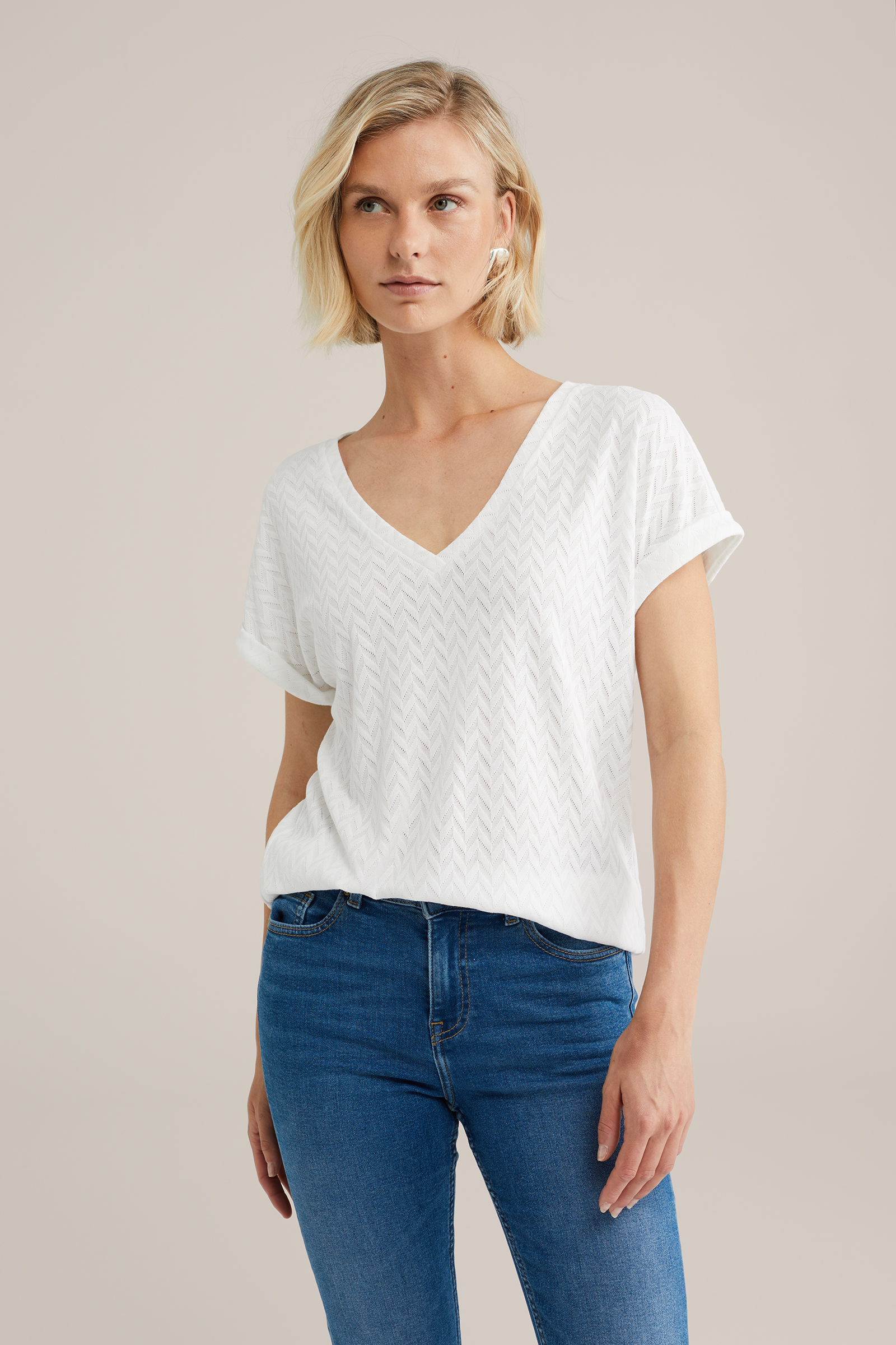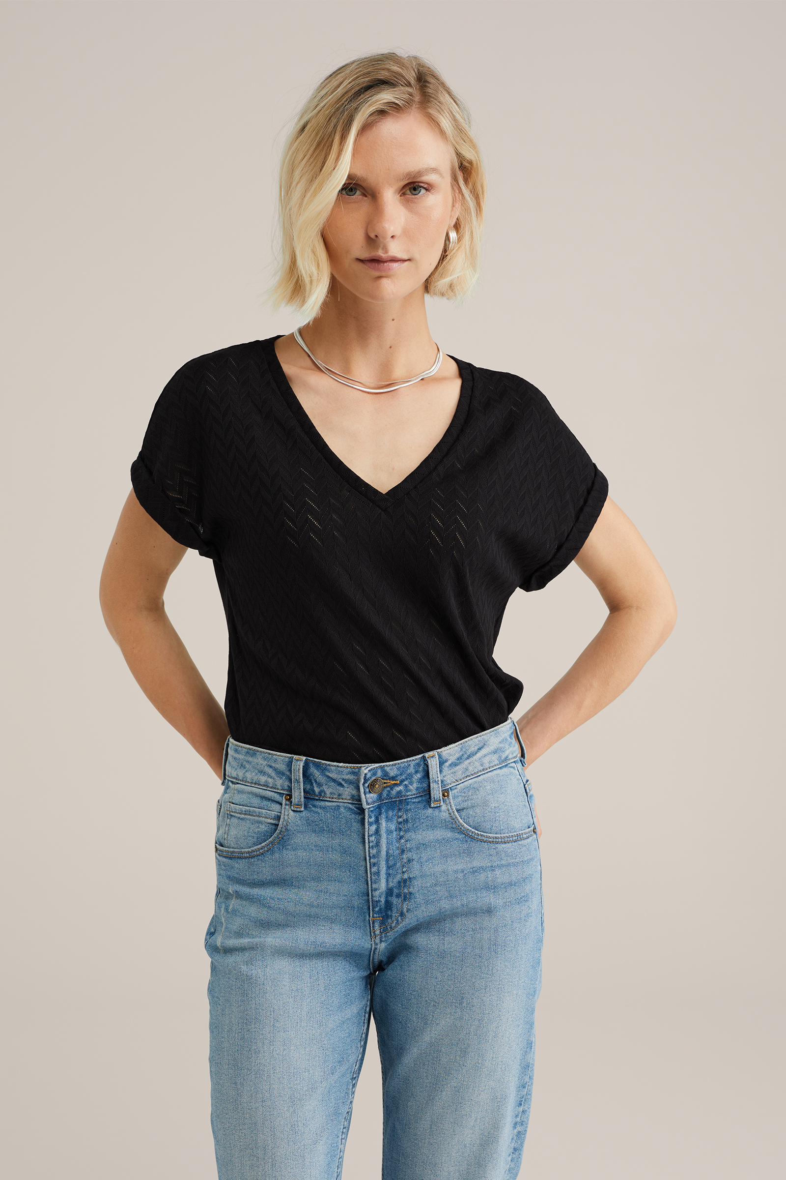 Dames T-shirt met opengewerkt structuur
