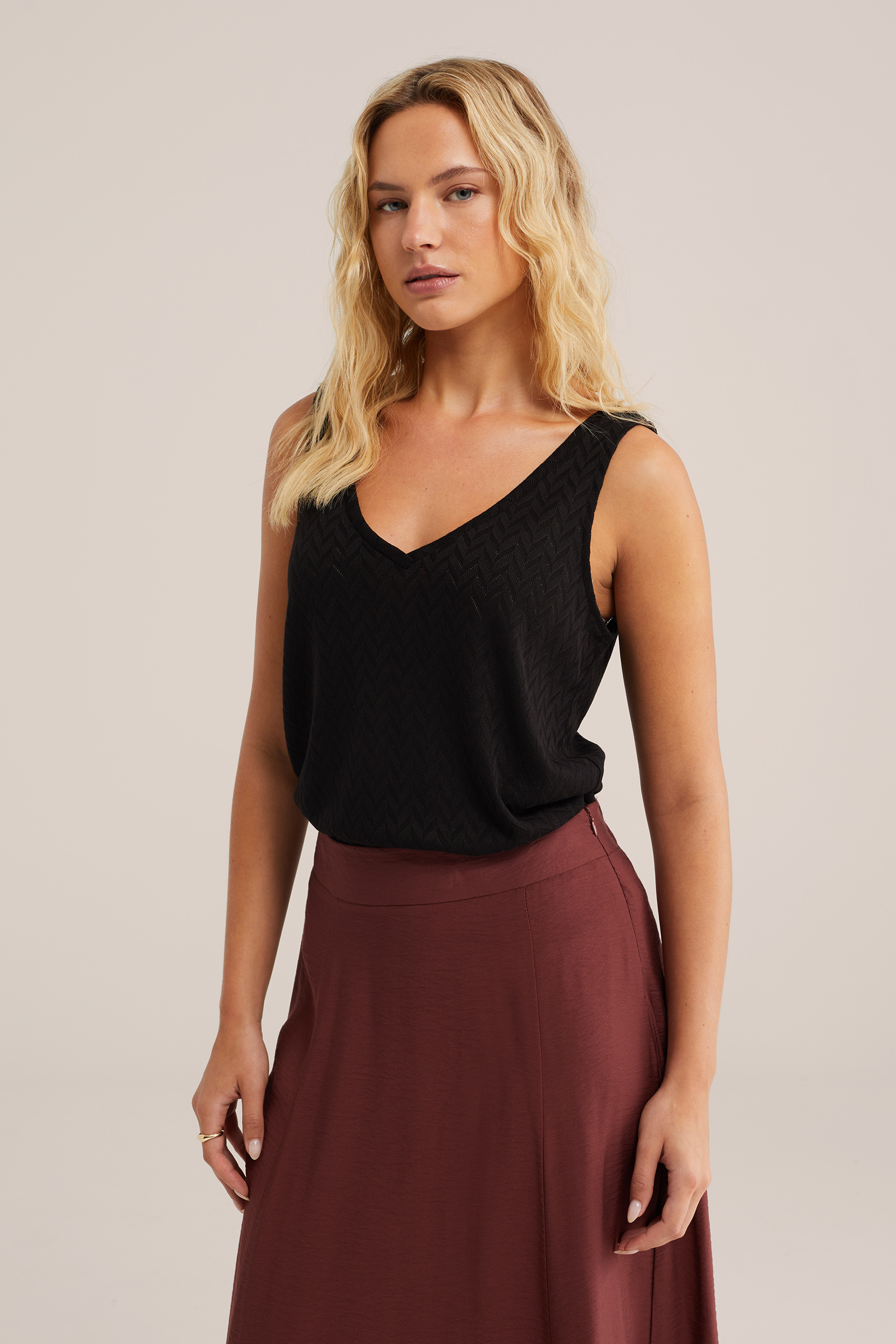 Dames jersey singlet met plooidetail