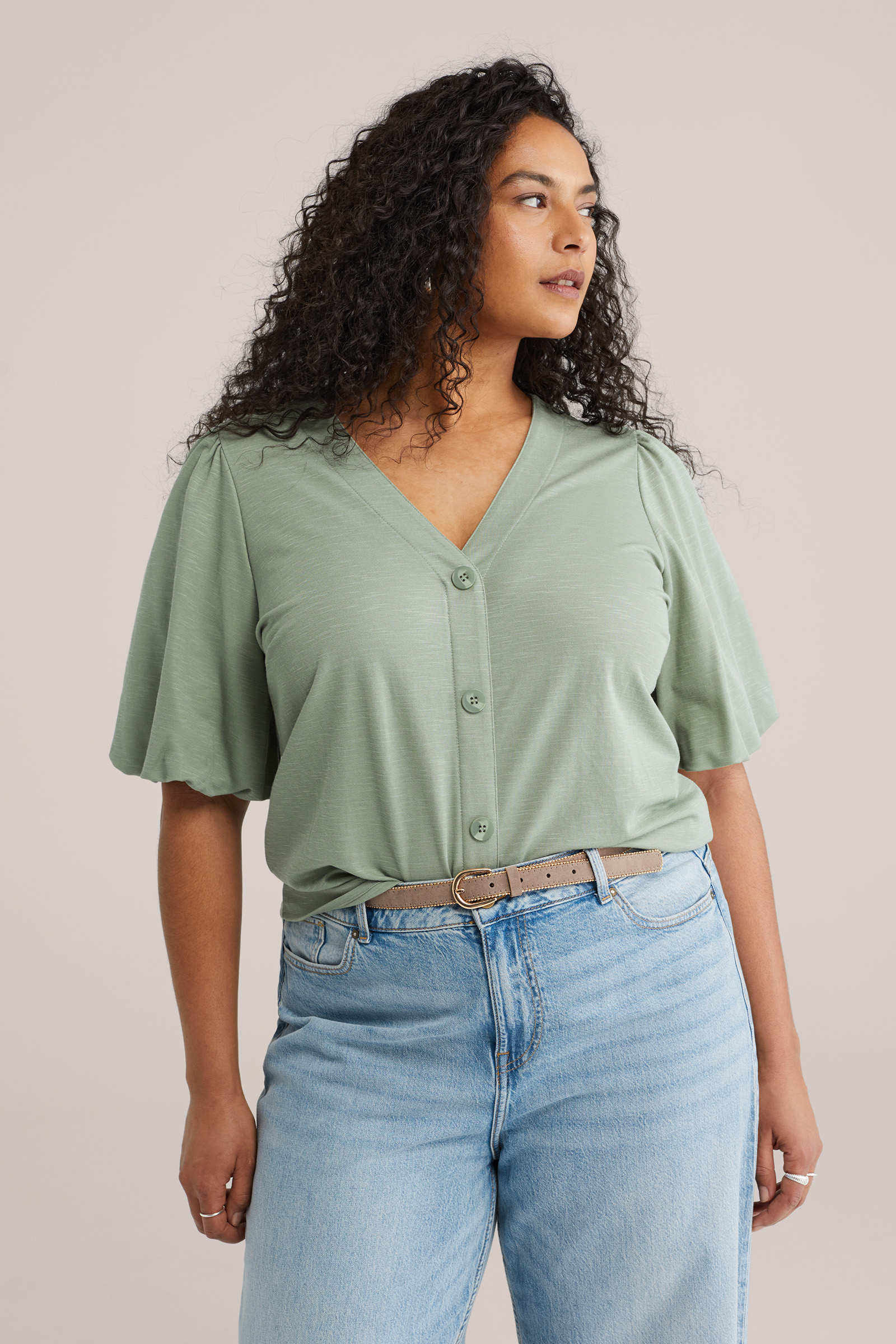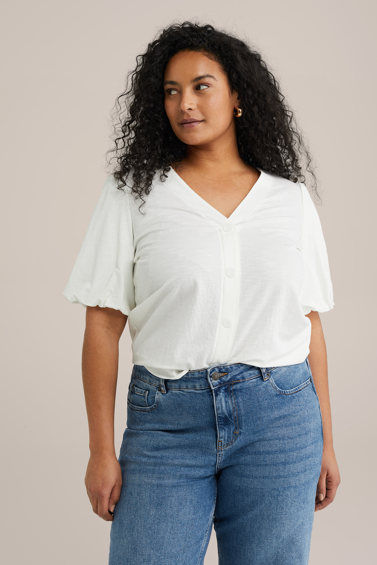 Dames Jersey top met ballonmouwen - Curve