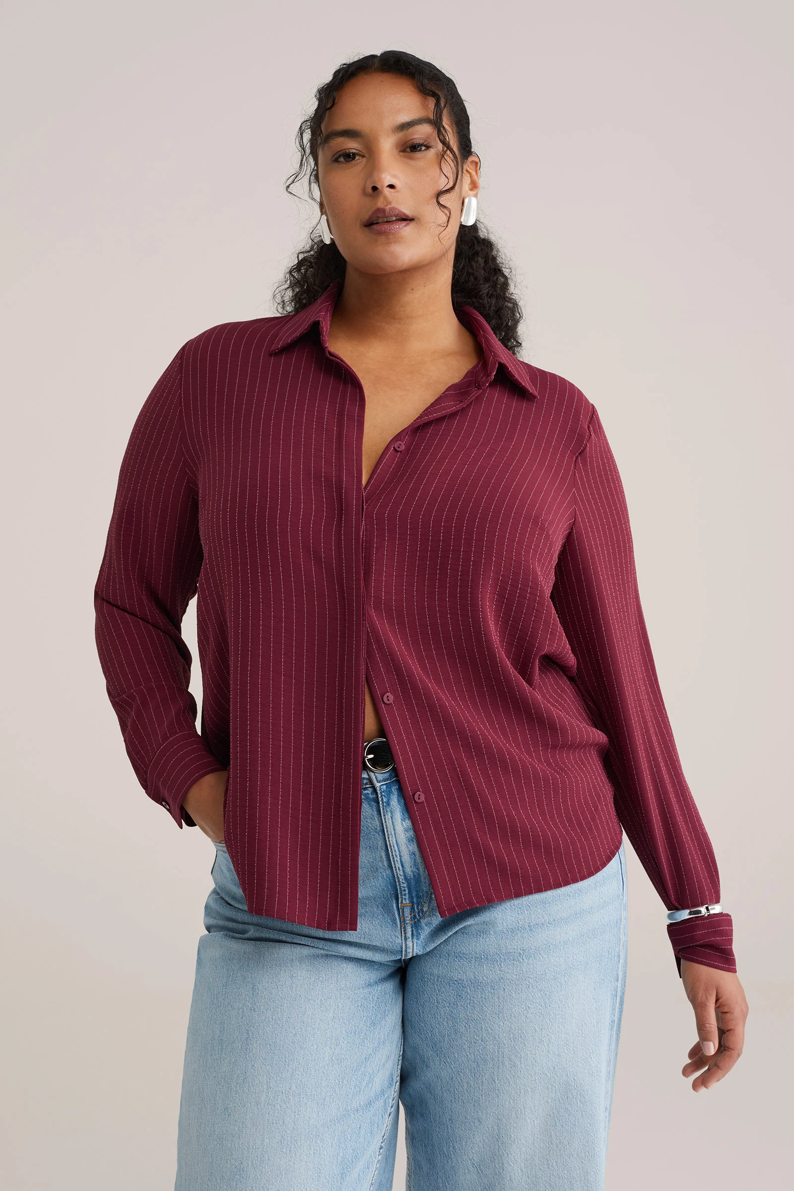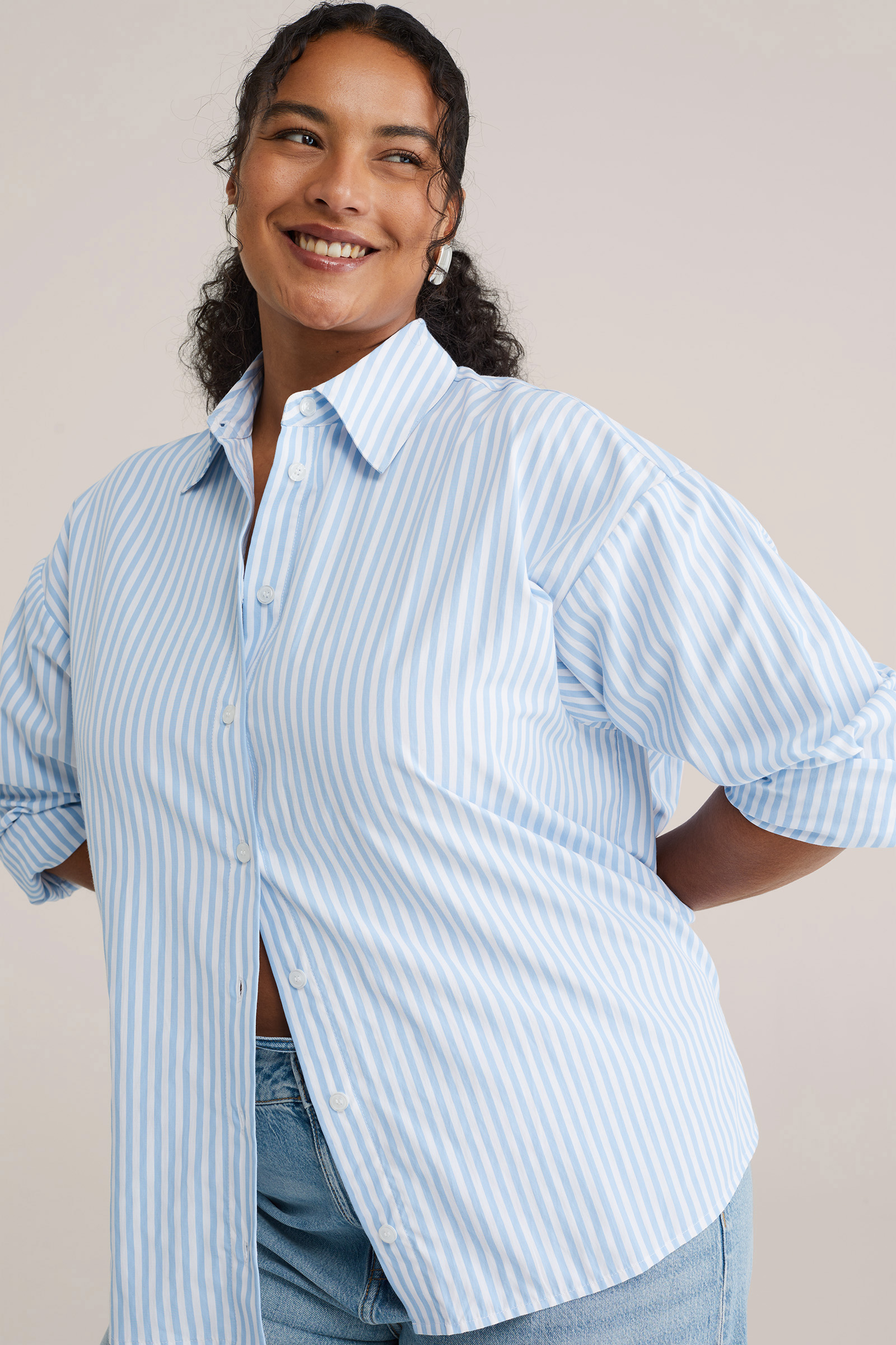 Dames seersucker blouse met streep - Curve