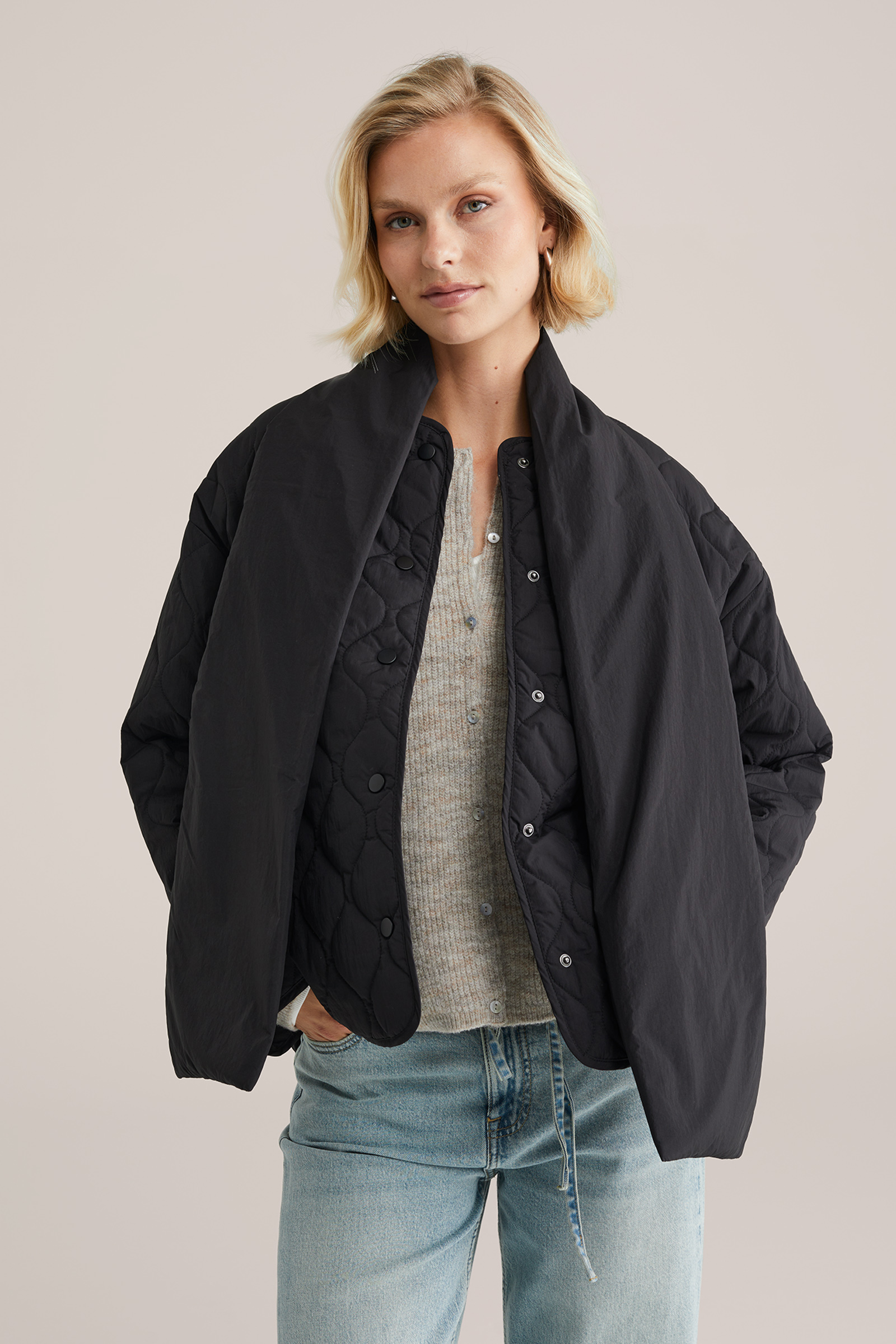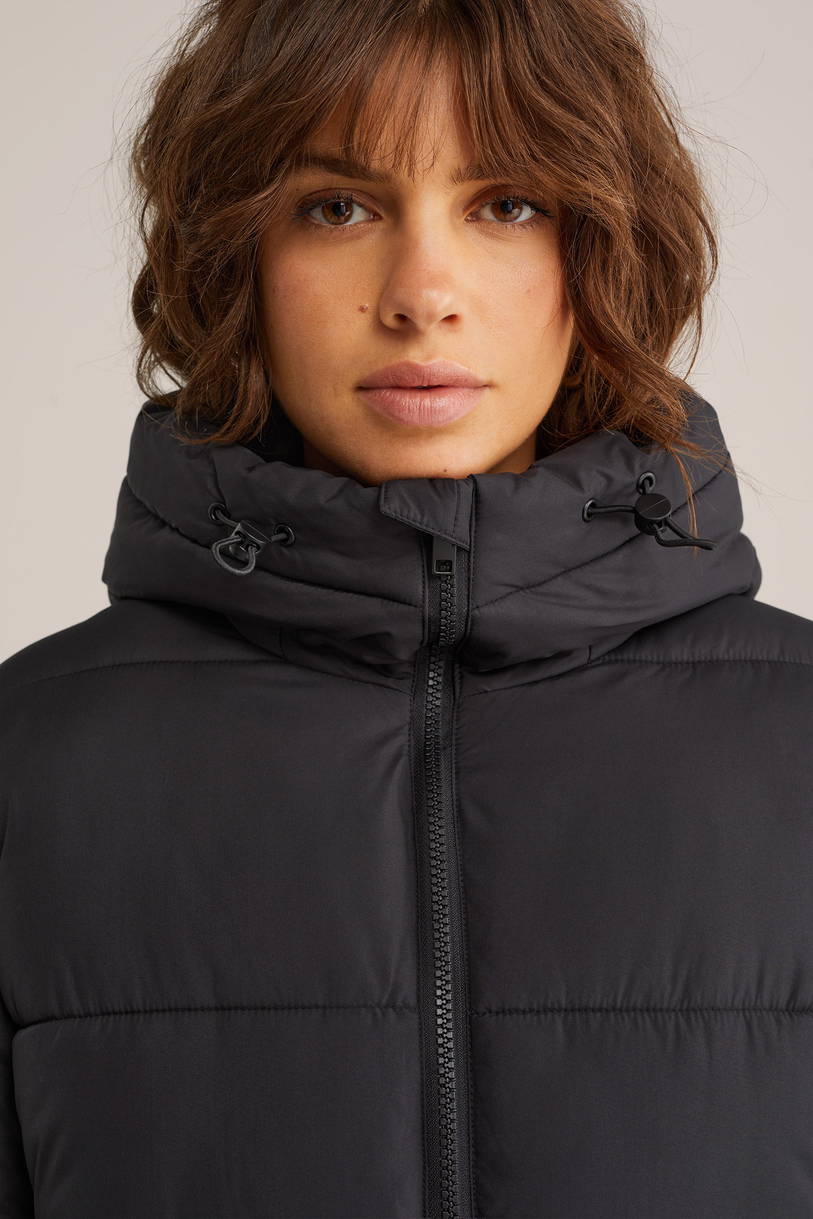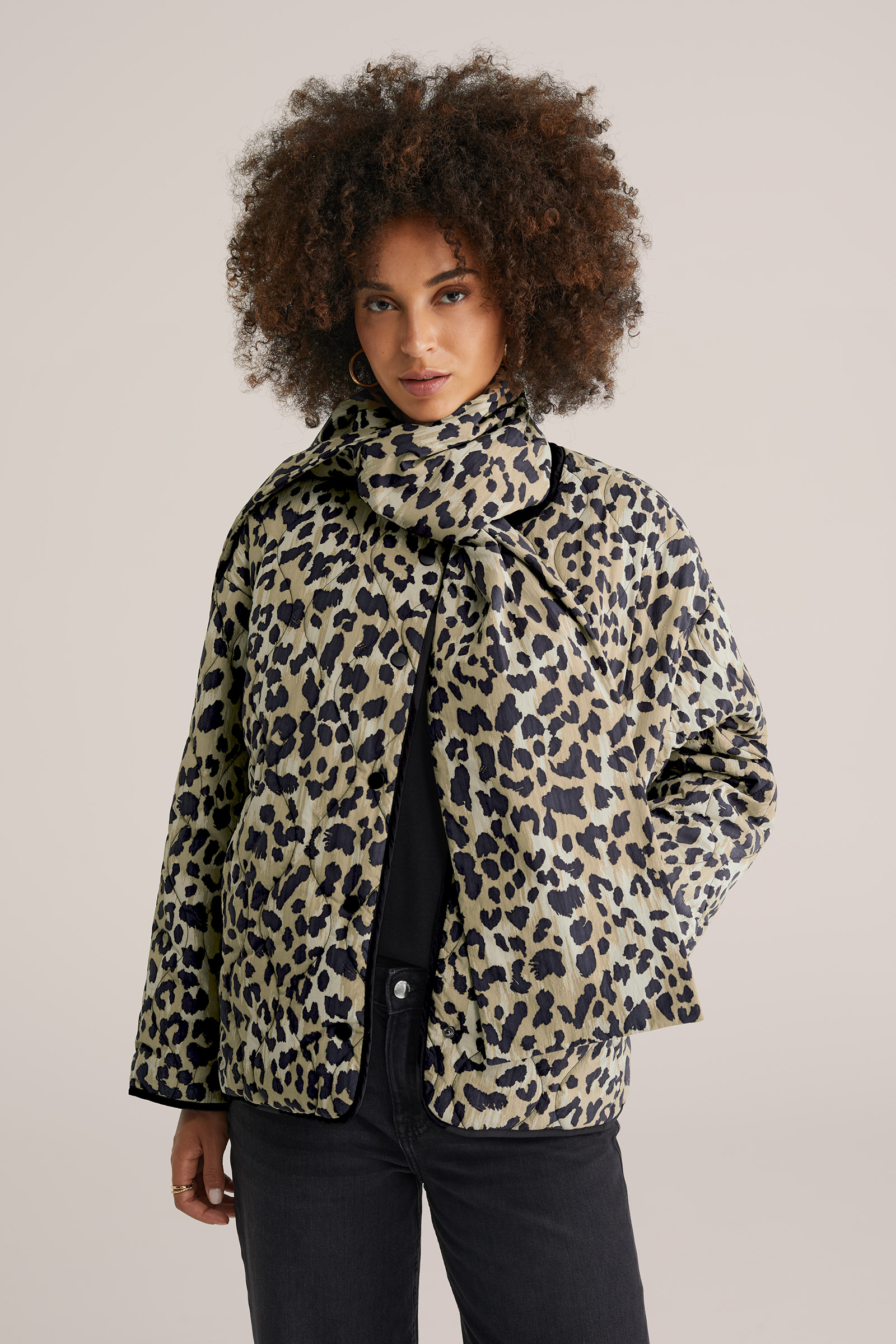 Dames gewatteerde jas inclusief afneembare sjaal