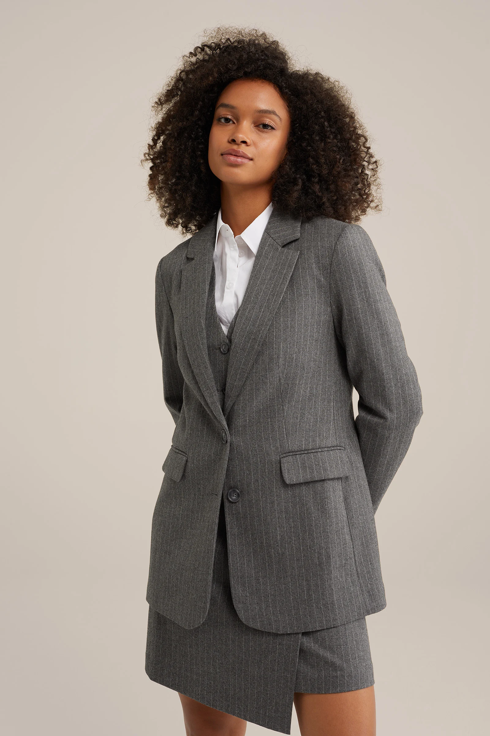 Dames Slim fit blazer met krijtstreep