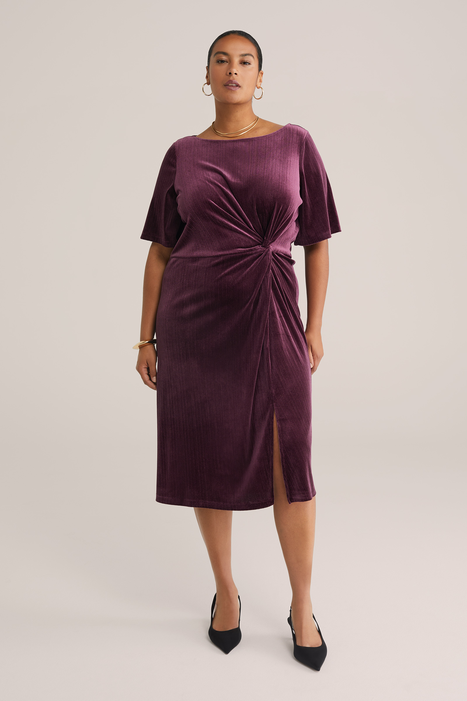 Dames velvet jurk met glittergaren - Curve