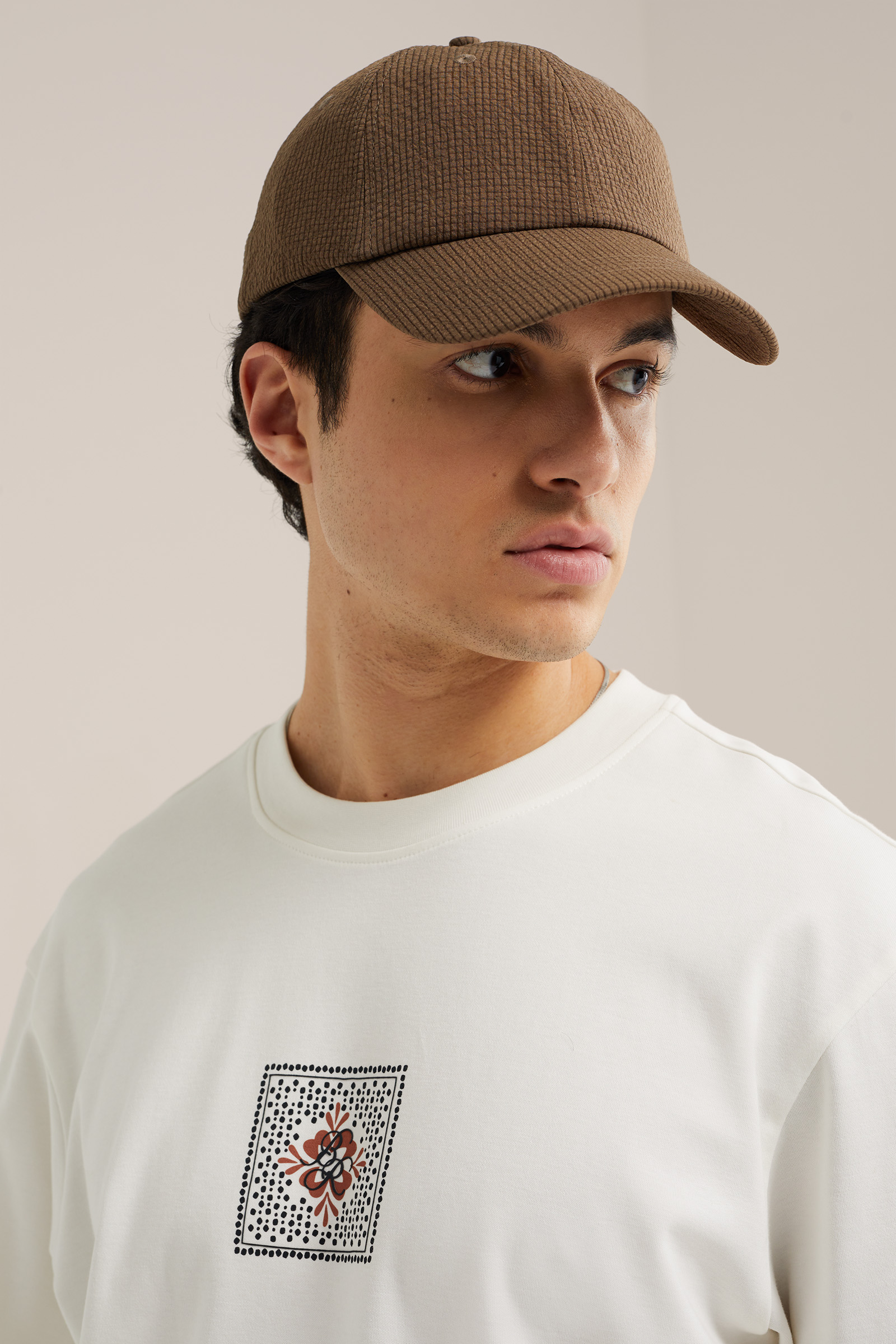 Heren seersucker pet met print