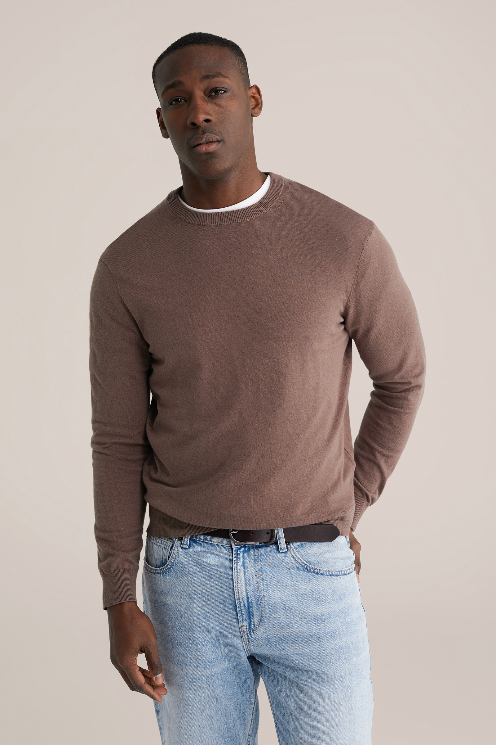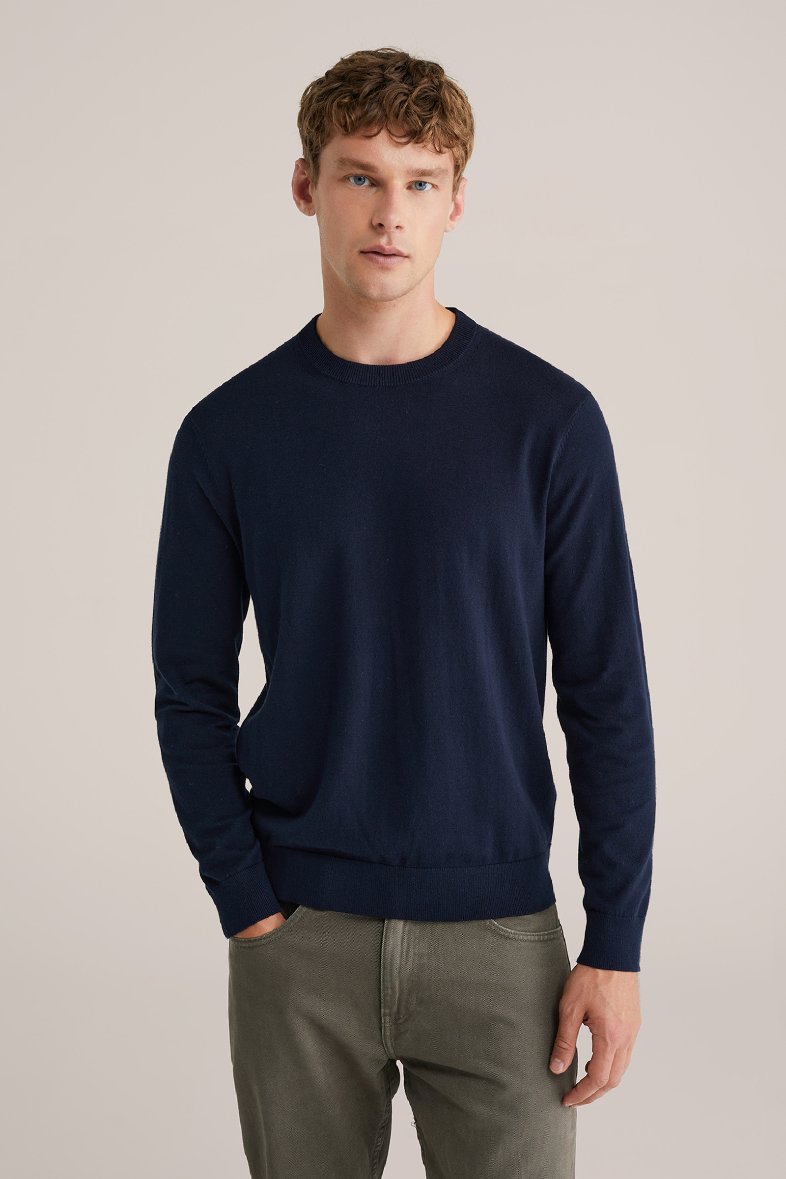 Heren slim fit fijngebreide trui