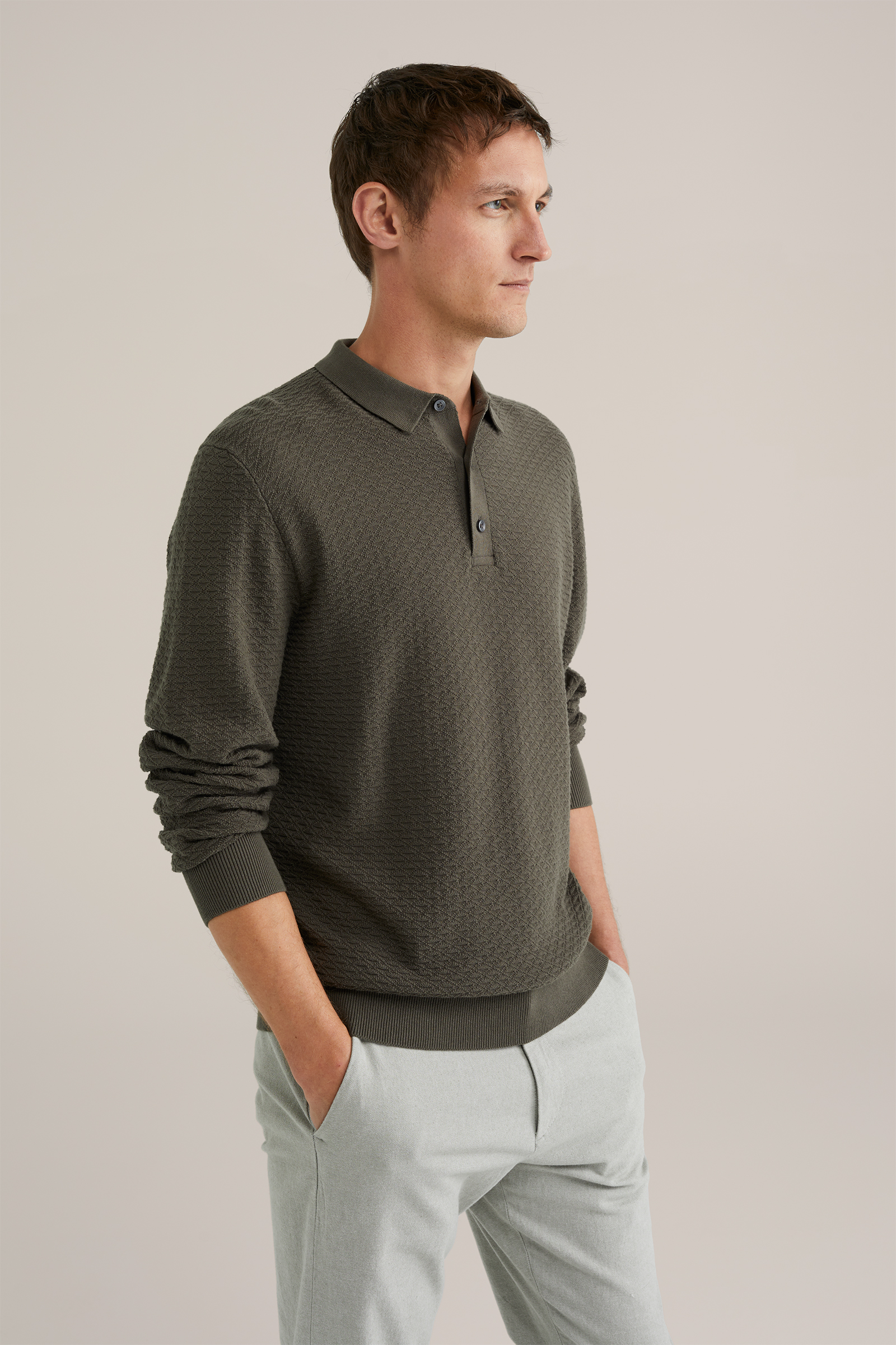 Heren Regular fit gebreide polo met structuur
