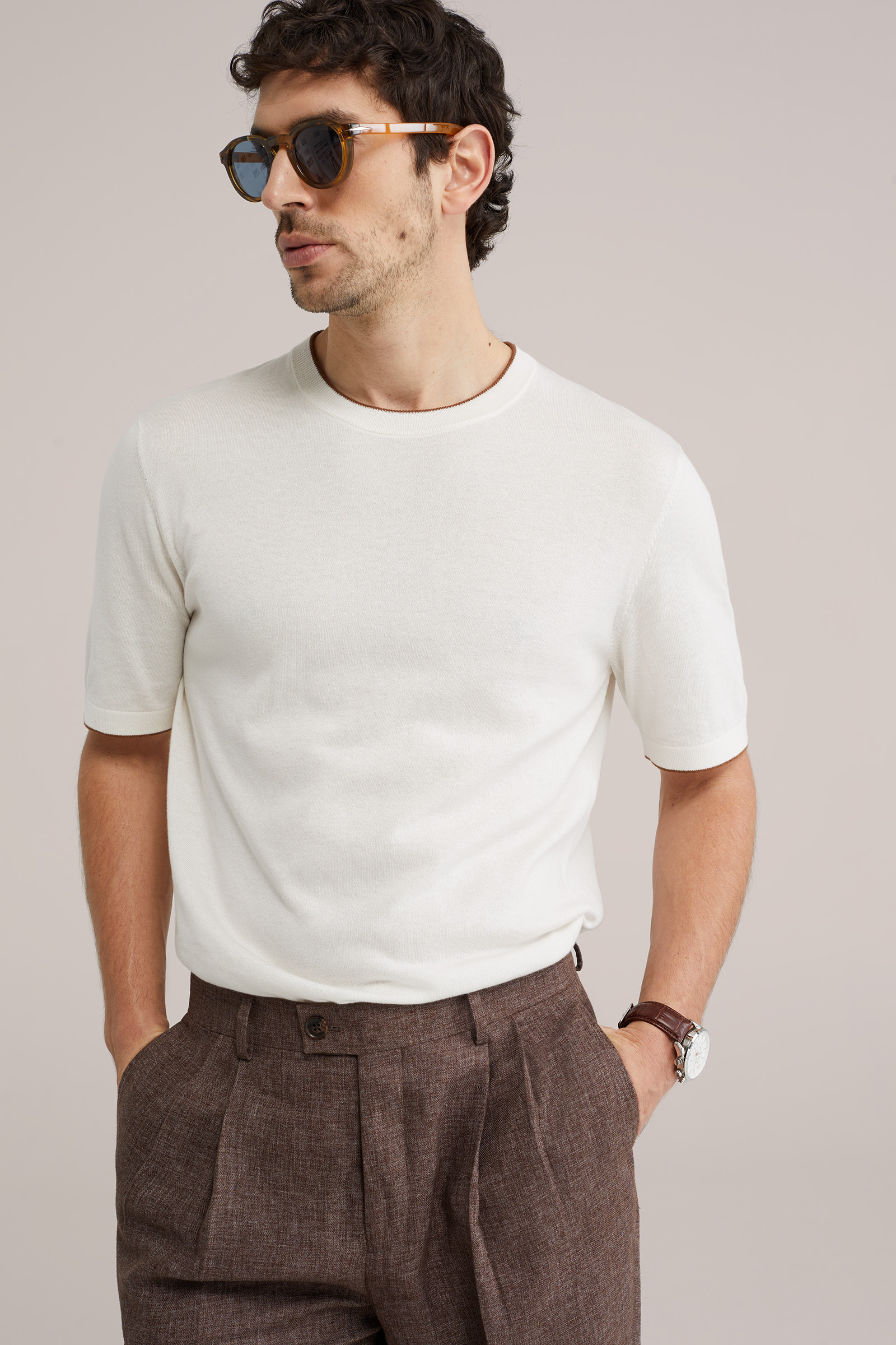 Heren regular fit gebreid T-shirt met contrast