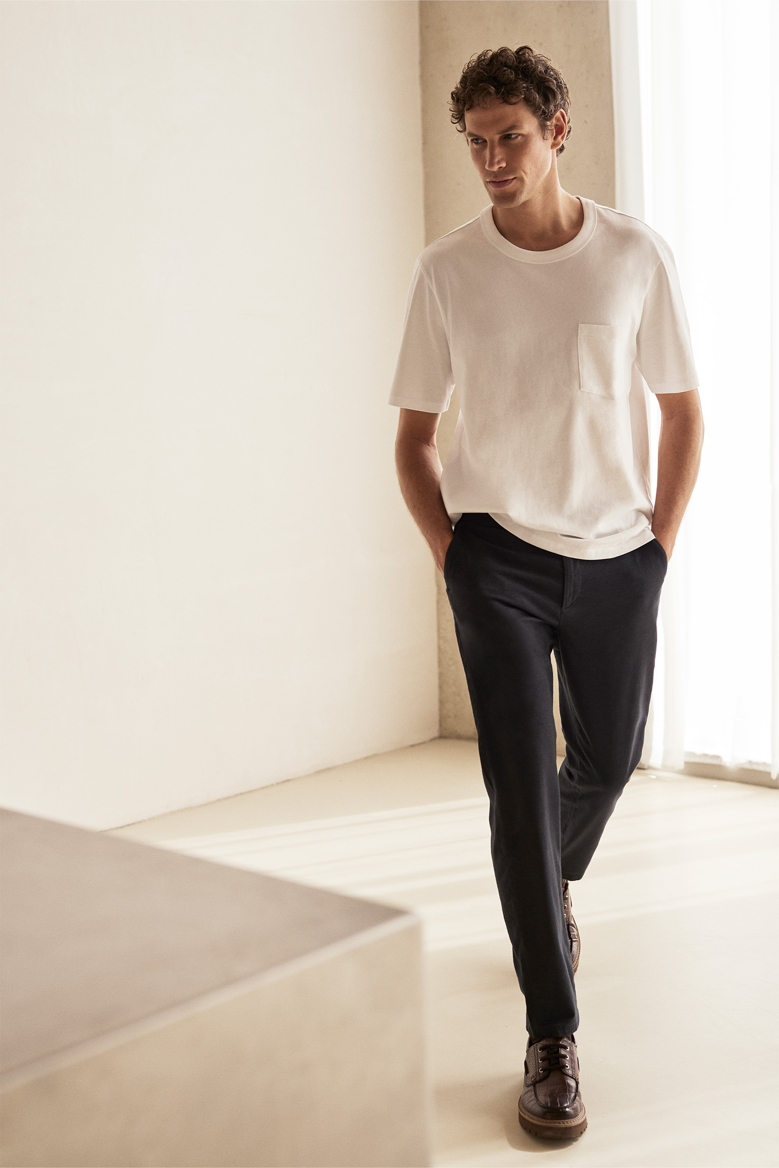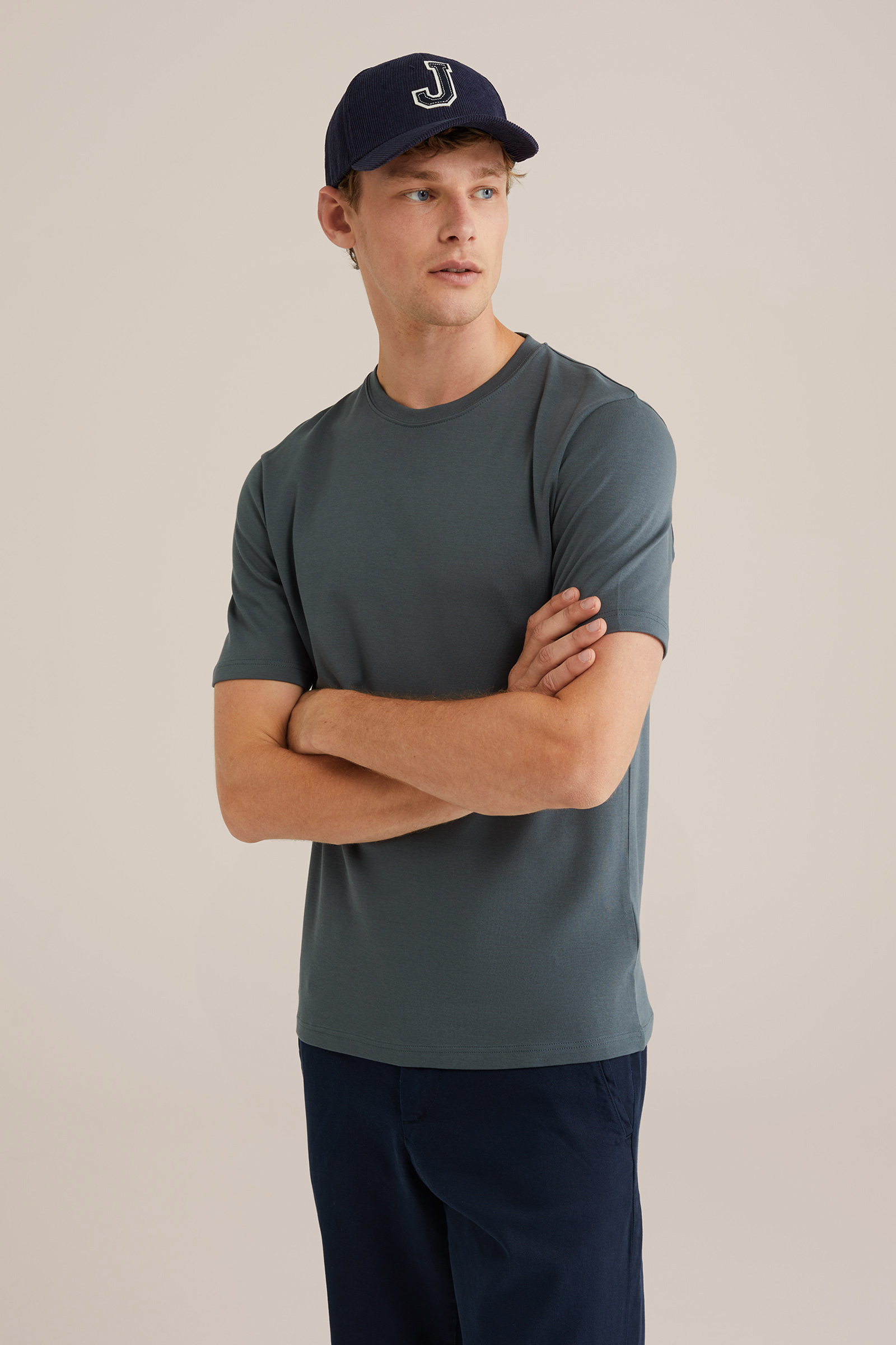 Heren Slim fit T-shirt met structuur