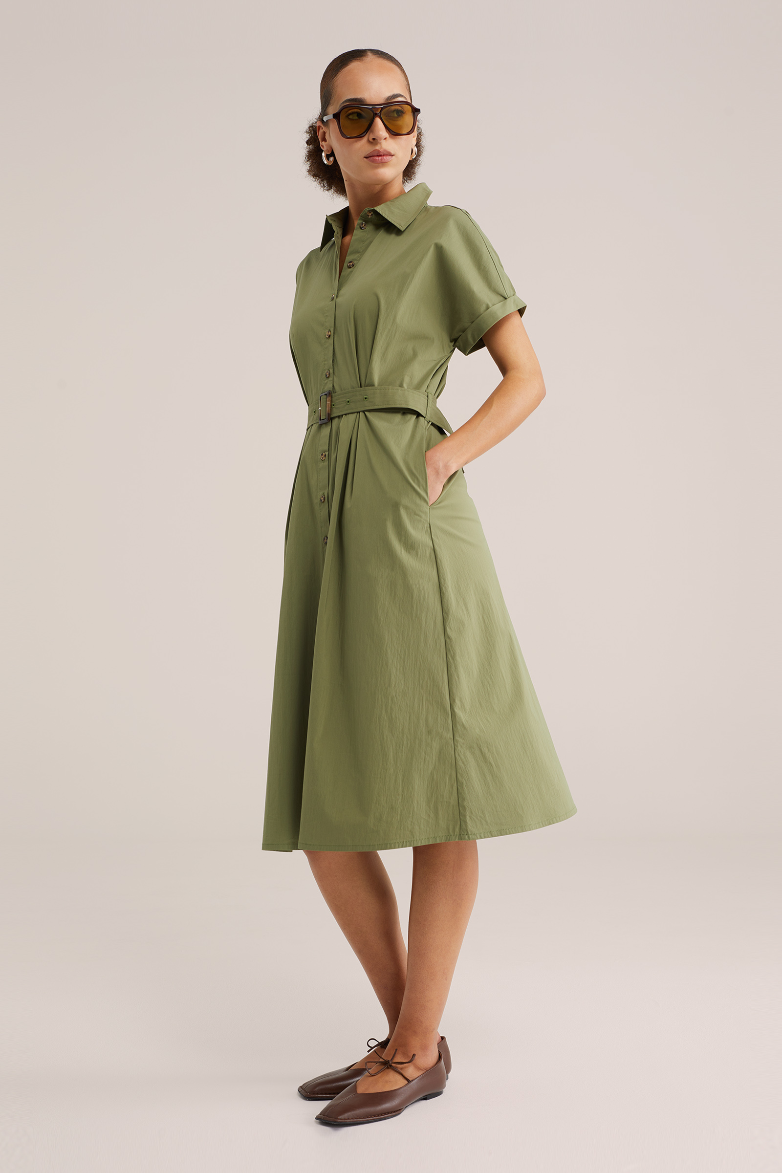 Dames midi jurk van katoenmix
