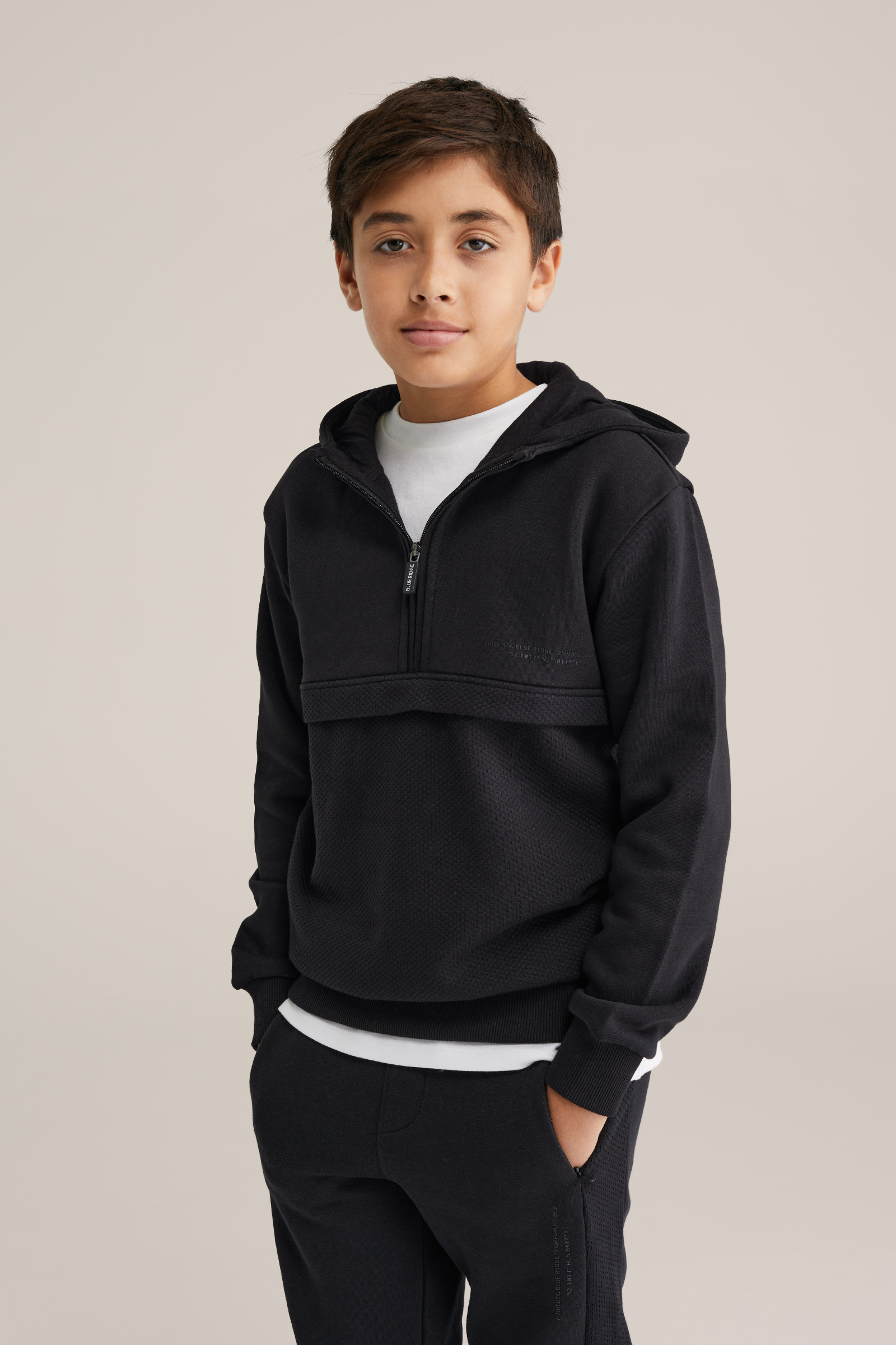 Jongens hoodie met quarter-zip en structuur
