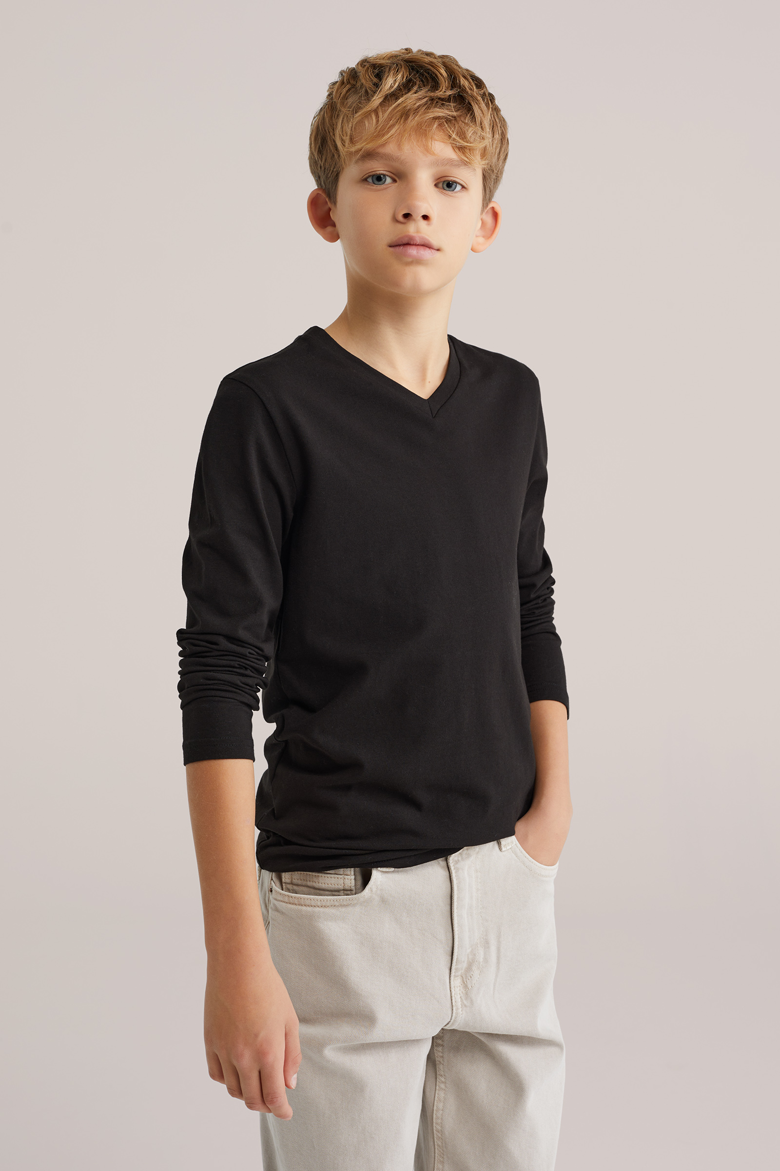 Jongens basic T-shirt met V-hals