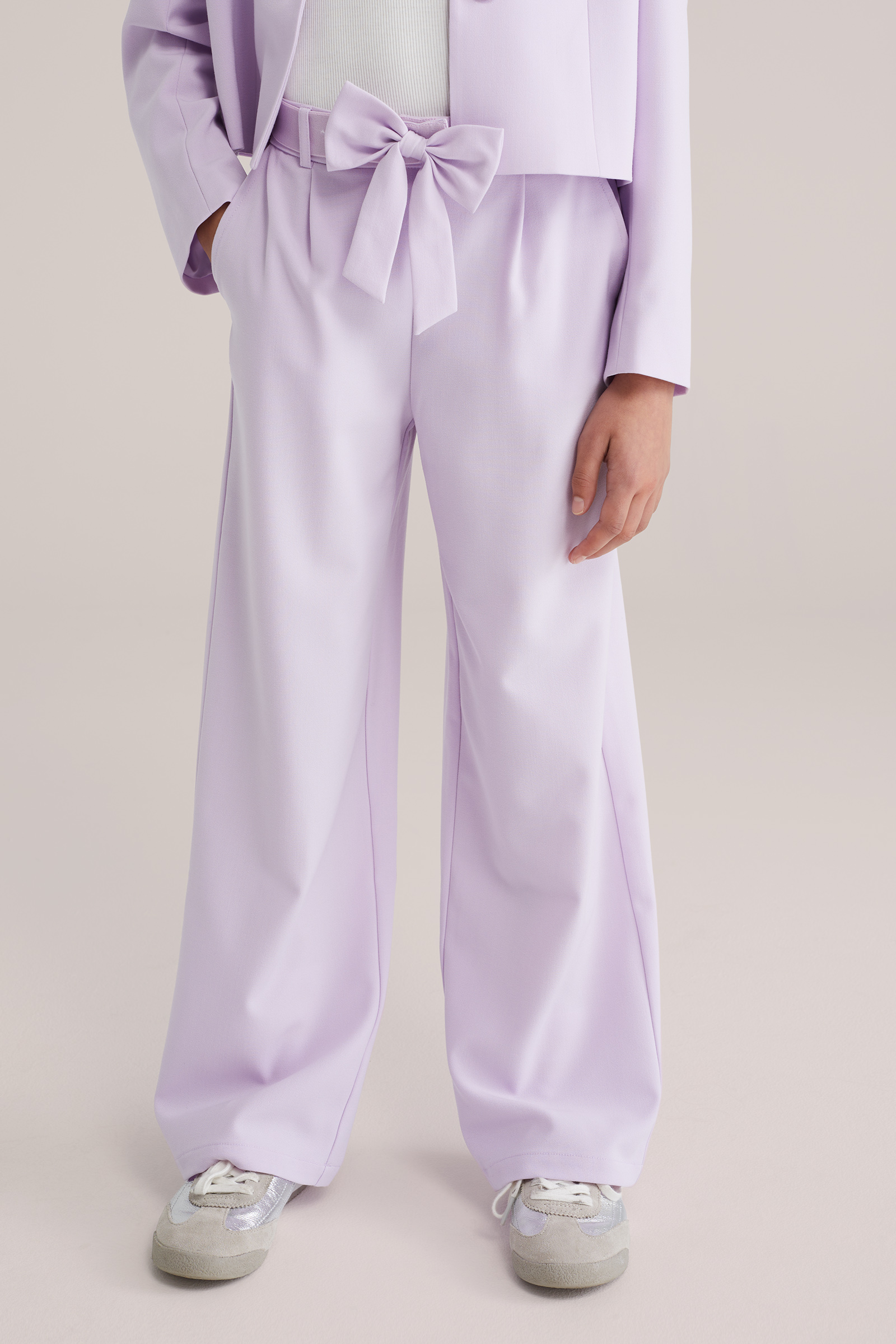 Meisjes straight fit broek met strikdetail