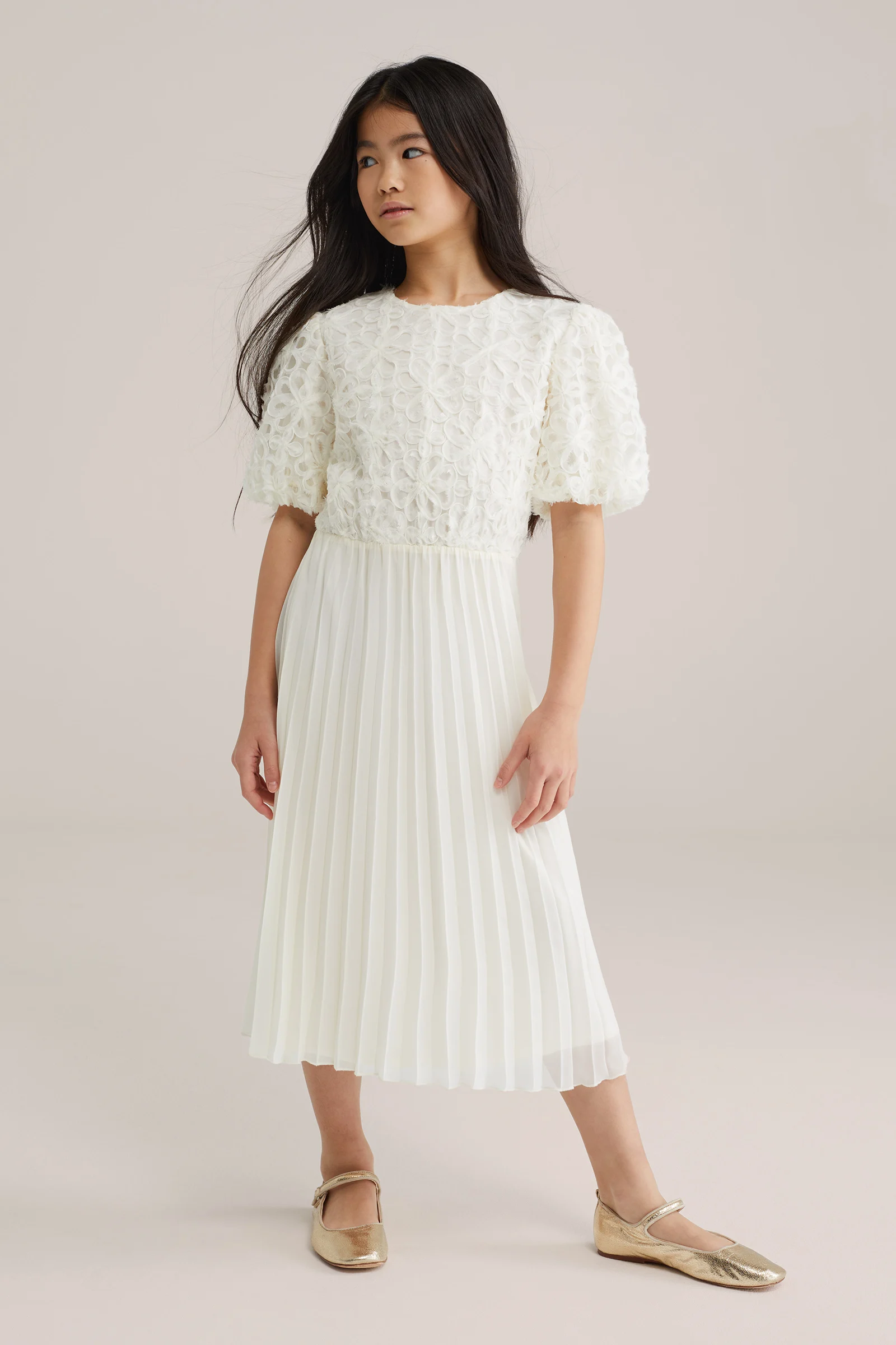 Meisjes plisse jurk met structuur