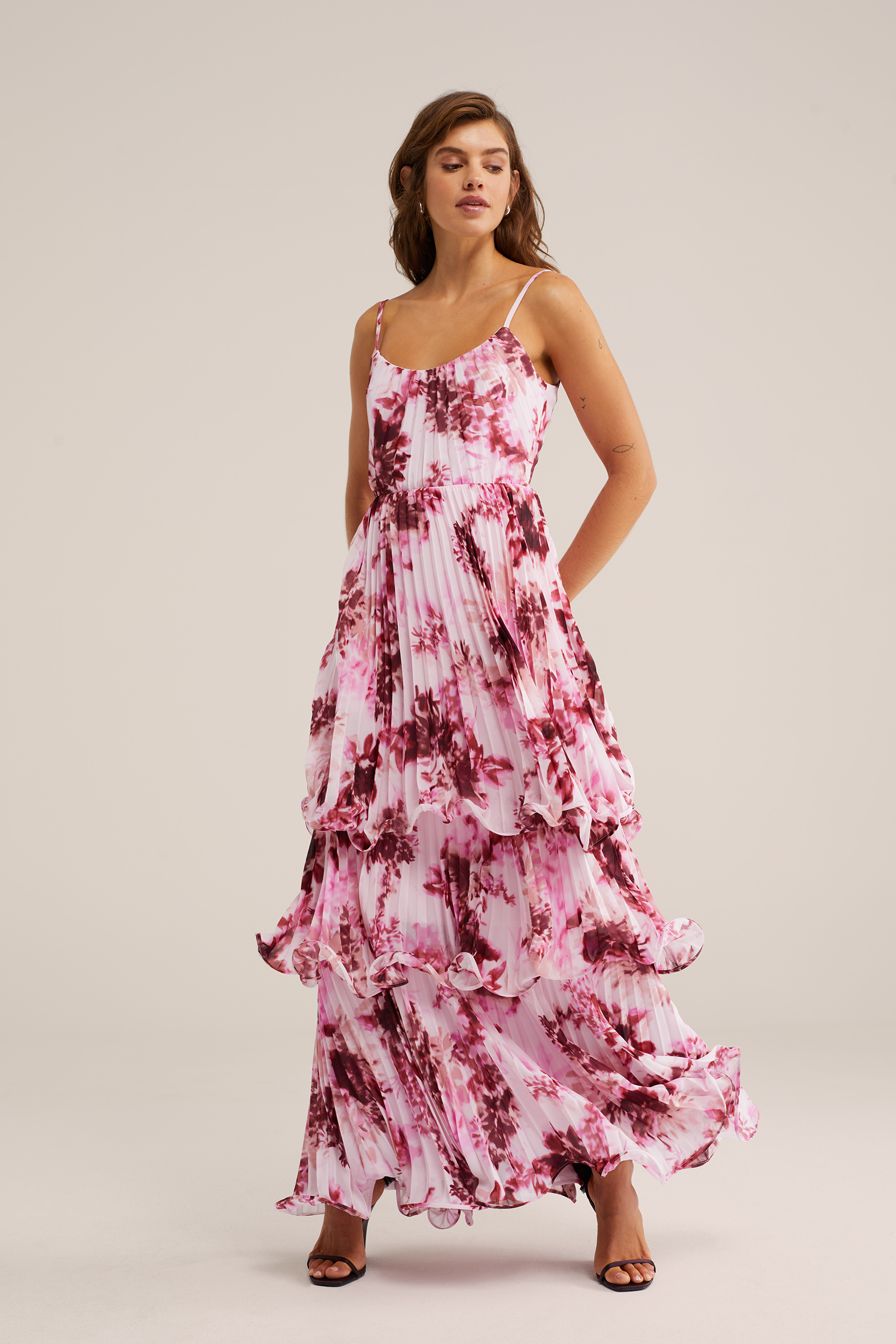 Dames maxi plisséjurk met print