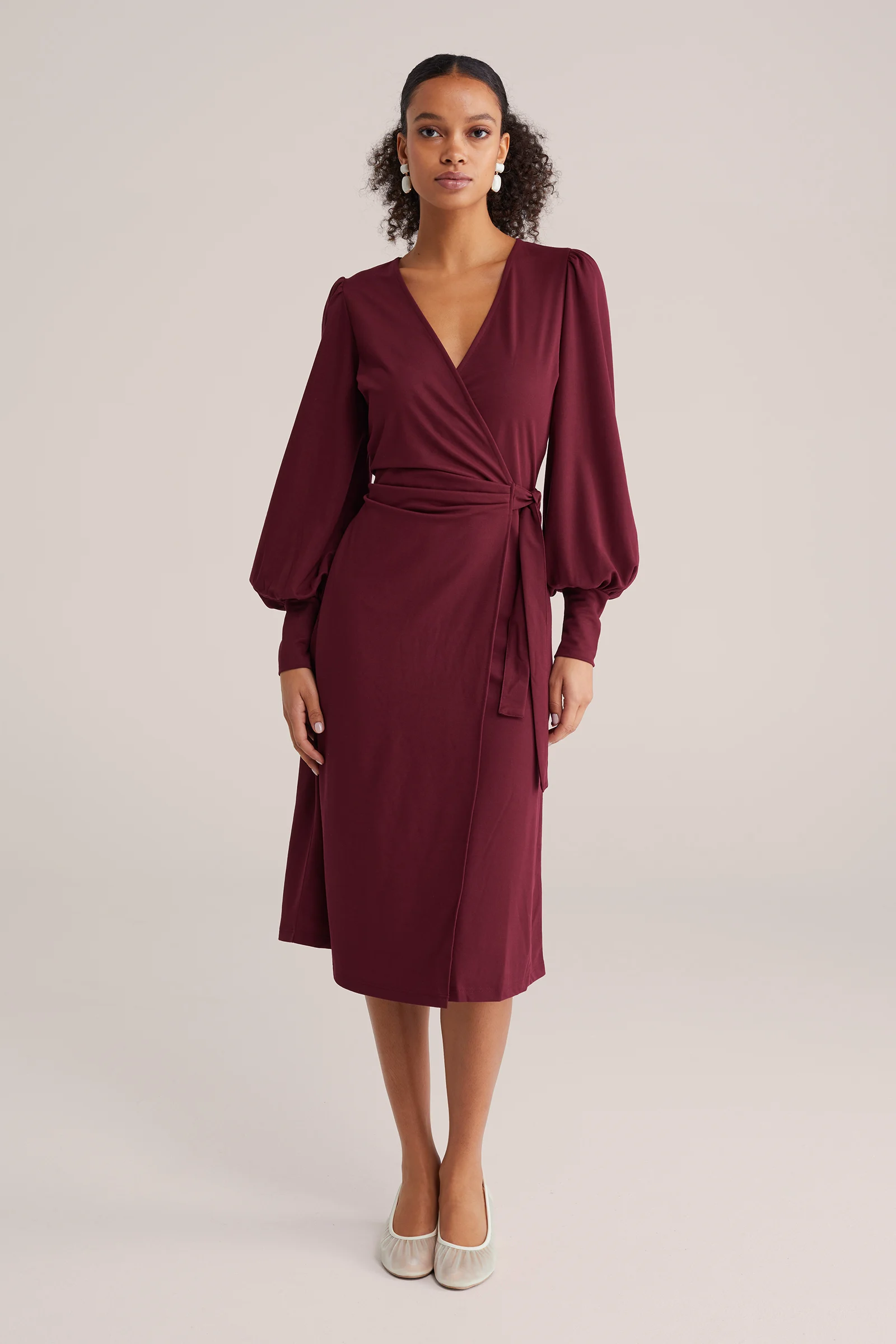 Dames Midi blousejurk met strikceintuur
