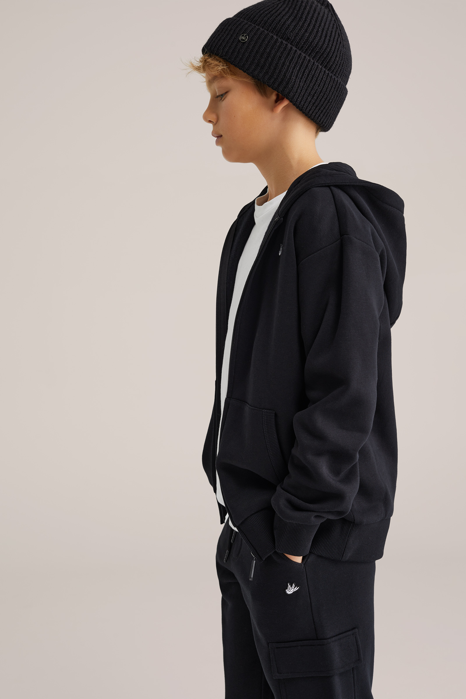 Jongens hoodie met capuchon en ritszakken