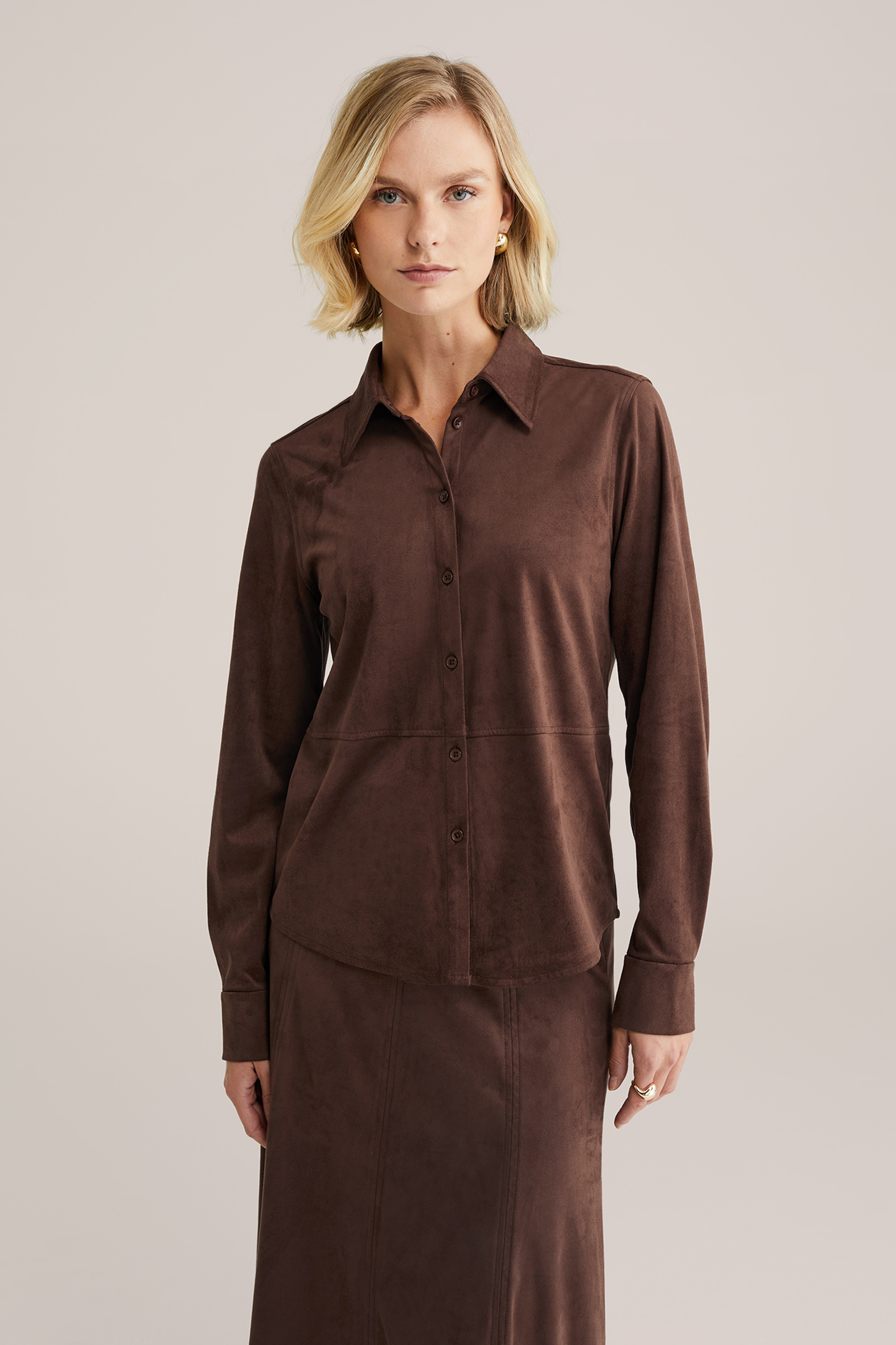 Dames blouse met suèdelook