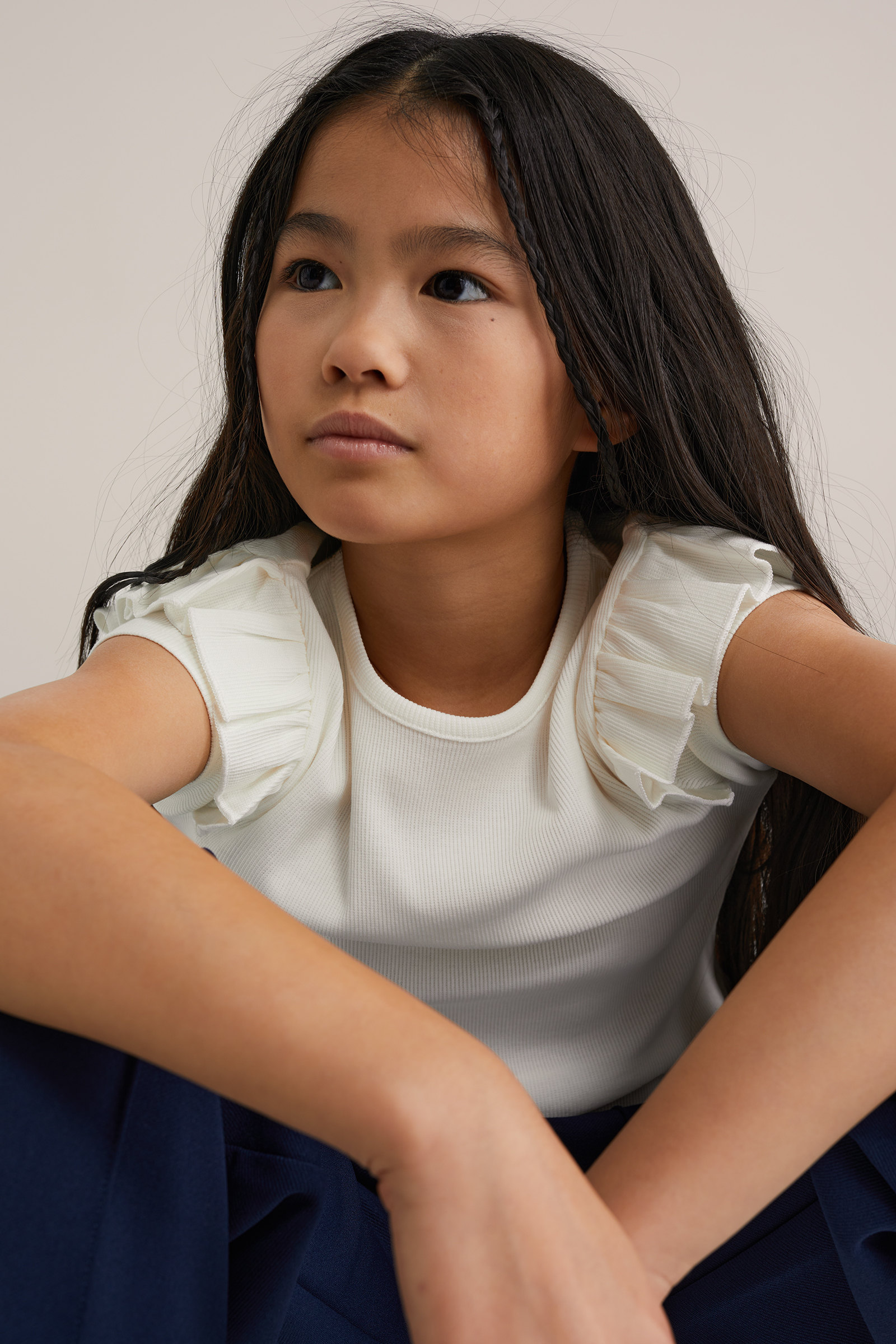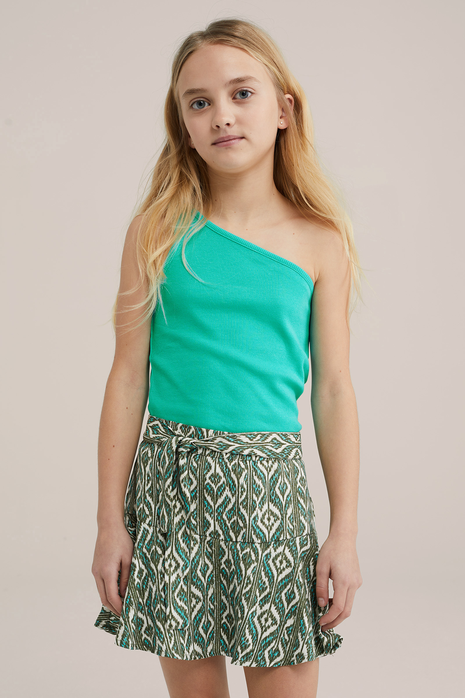 Meisjes one-shoulder top met ribstructuur