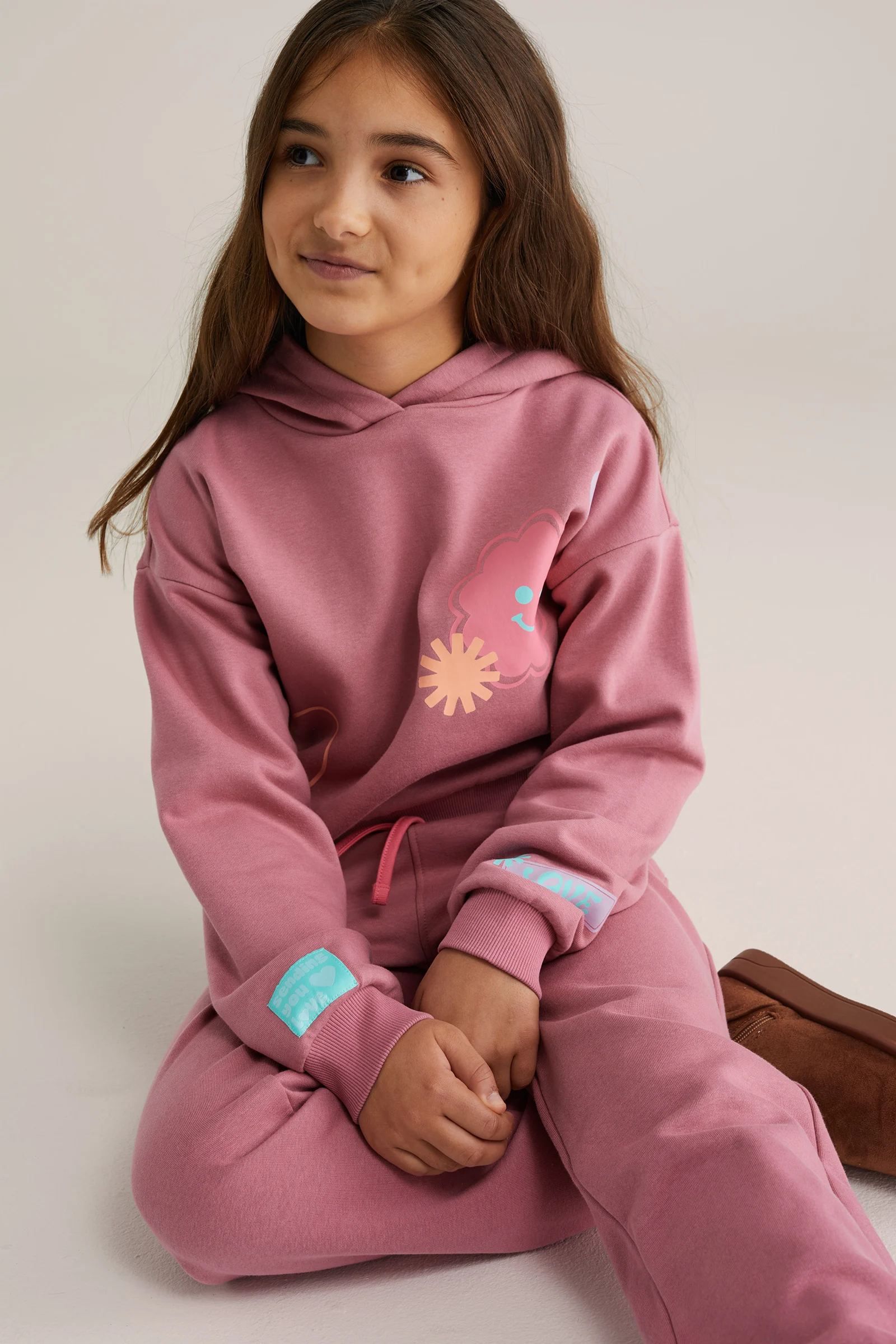 Meisjes oversized hoodie met patches