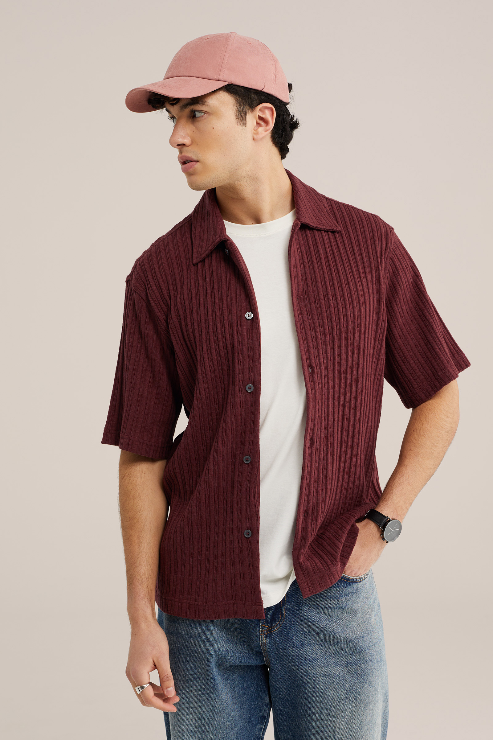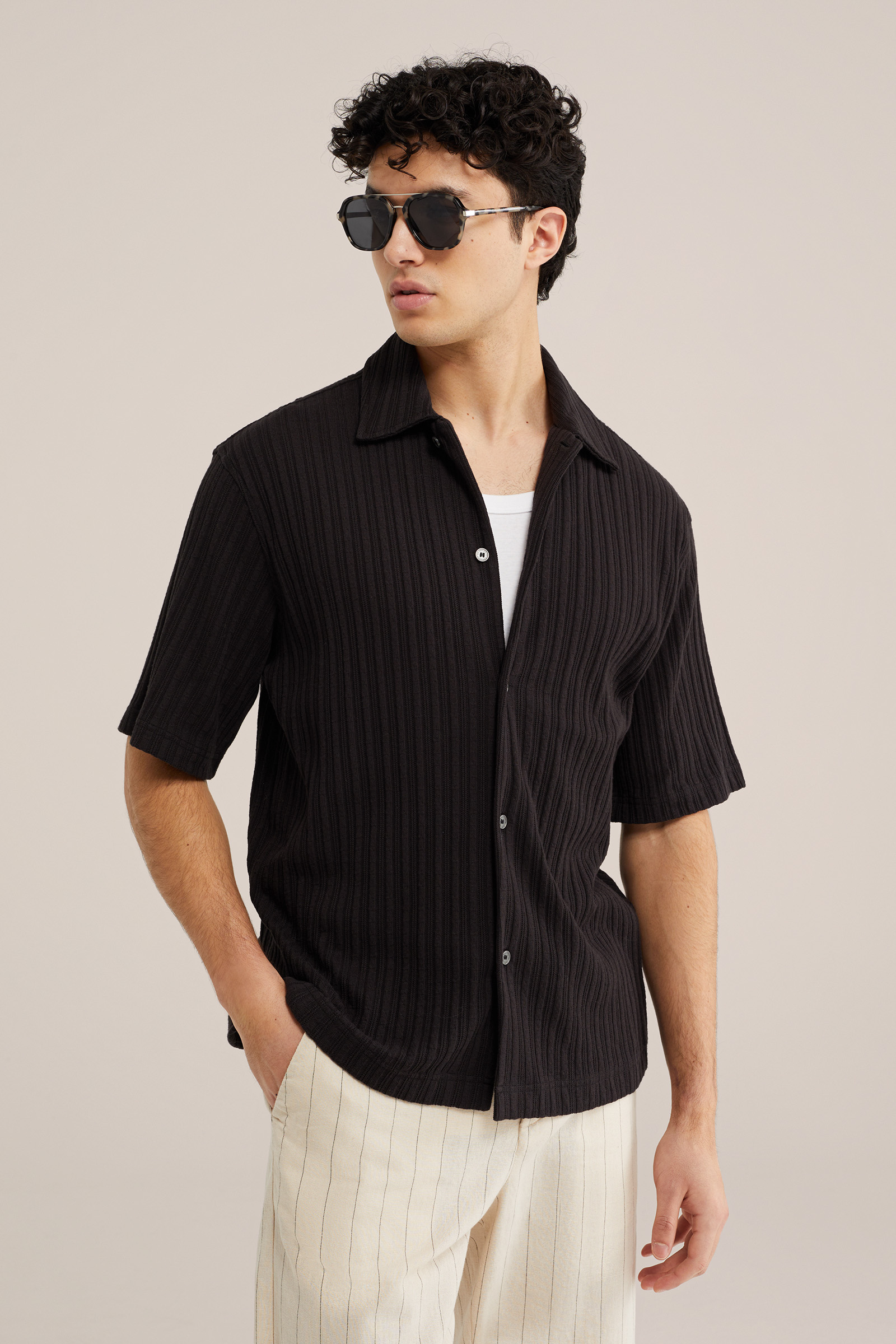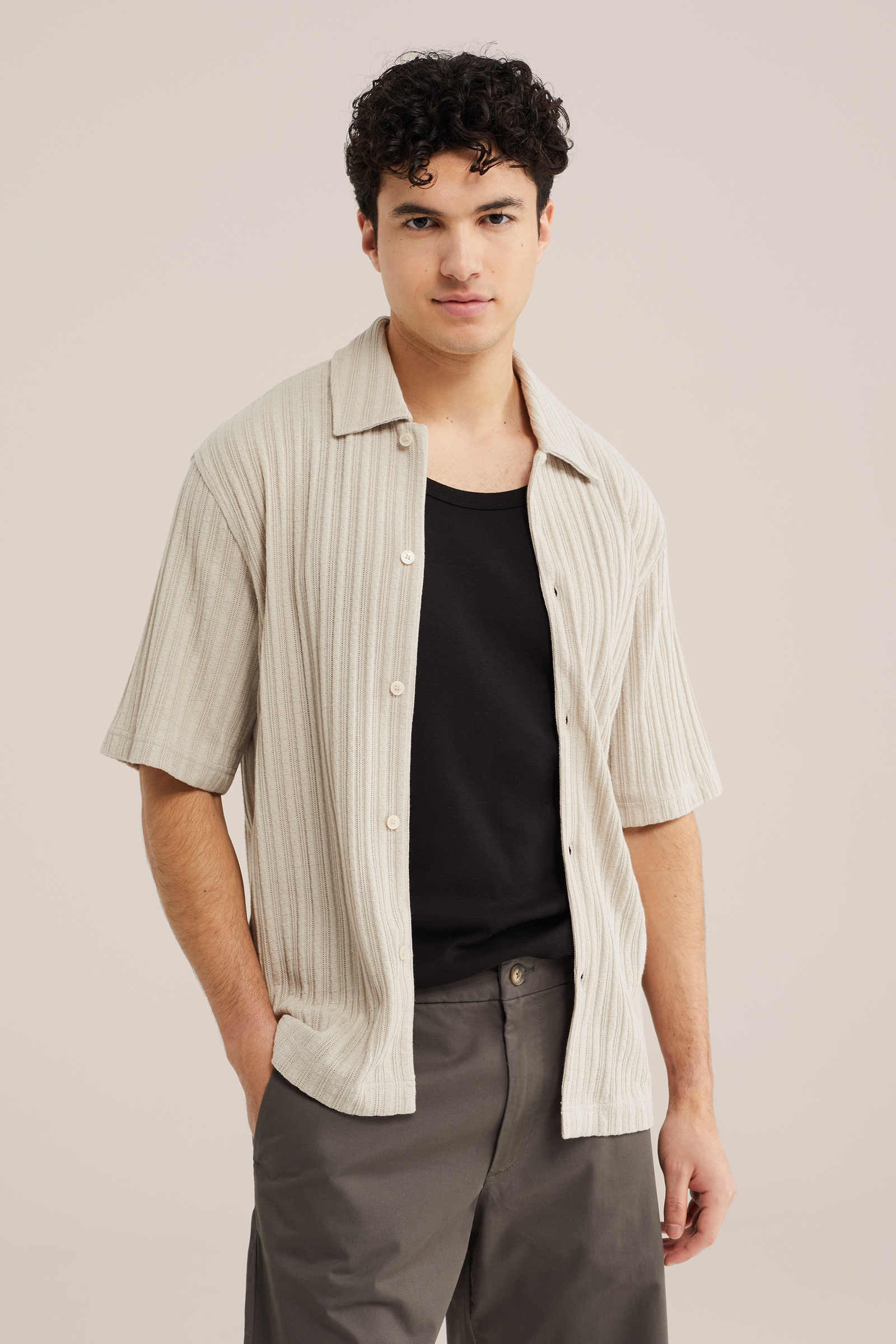 Heren relaxed fit gebreid overhemd