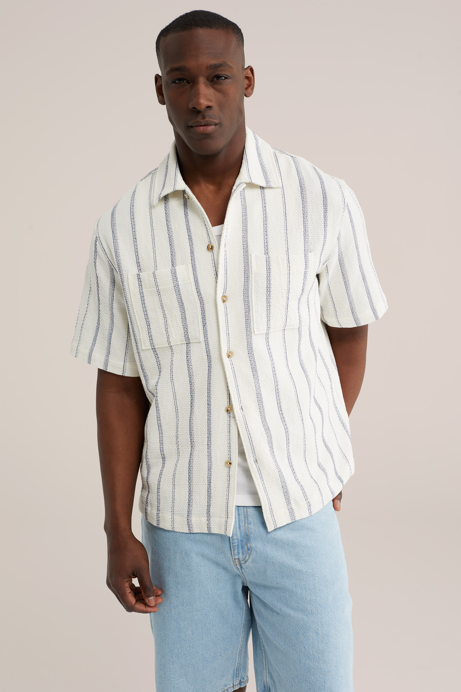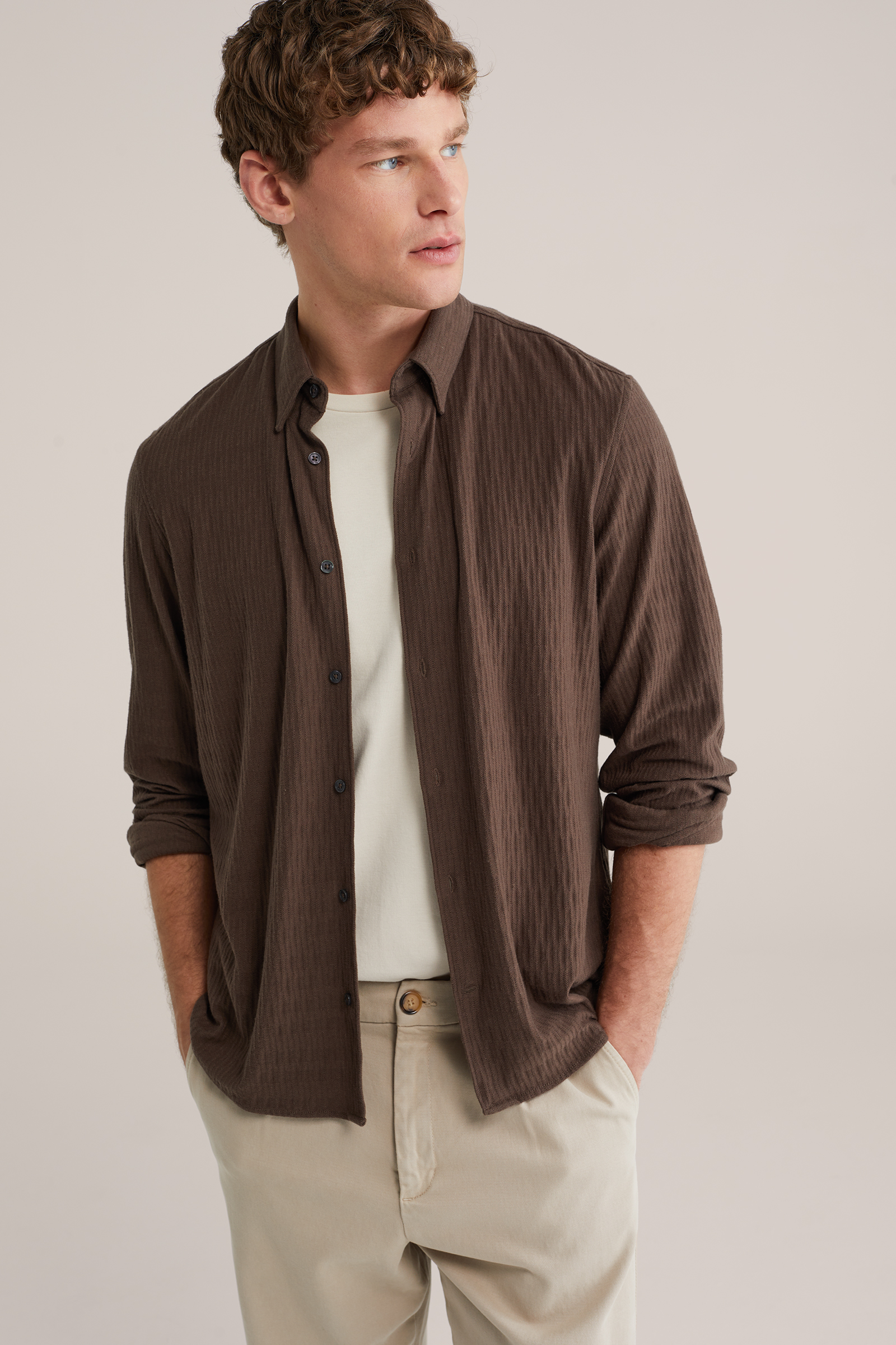 Heren gebreid overhemd met structuur