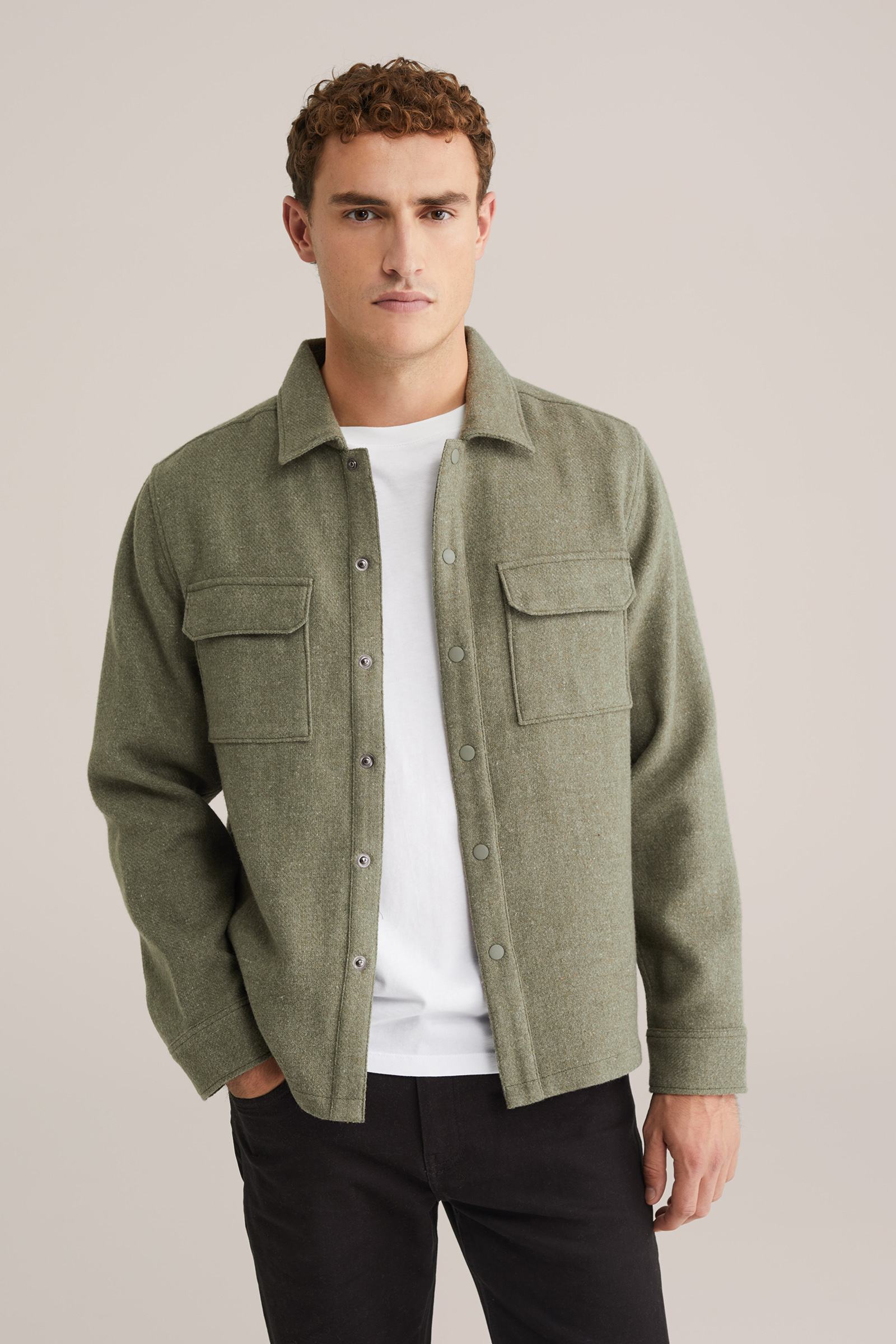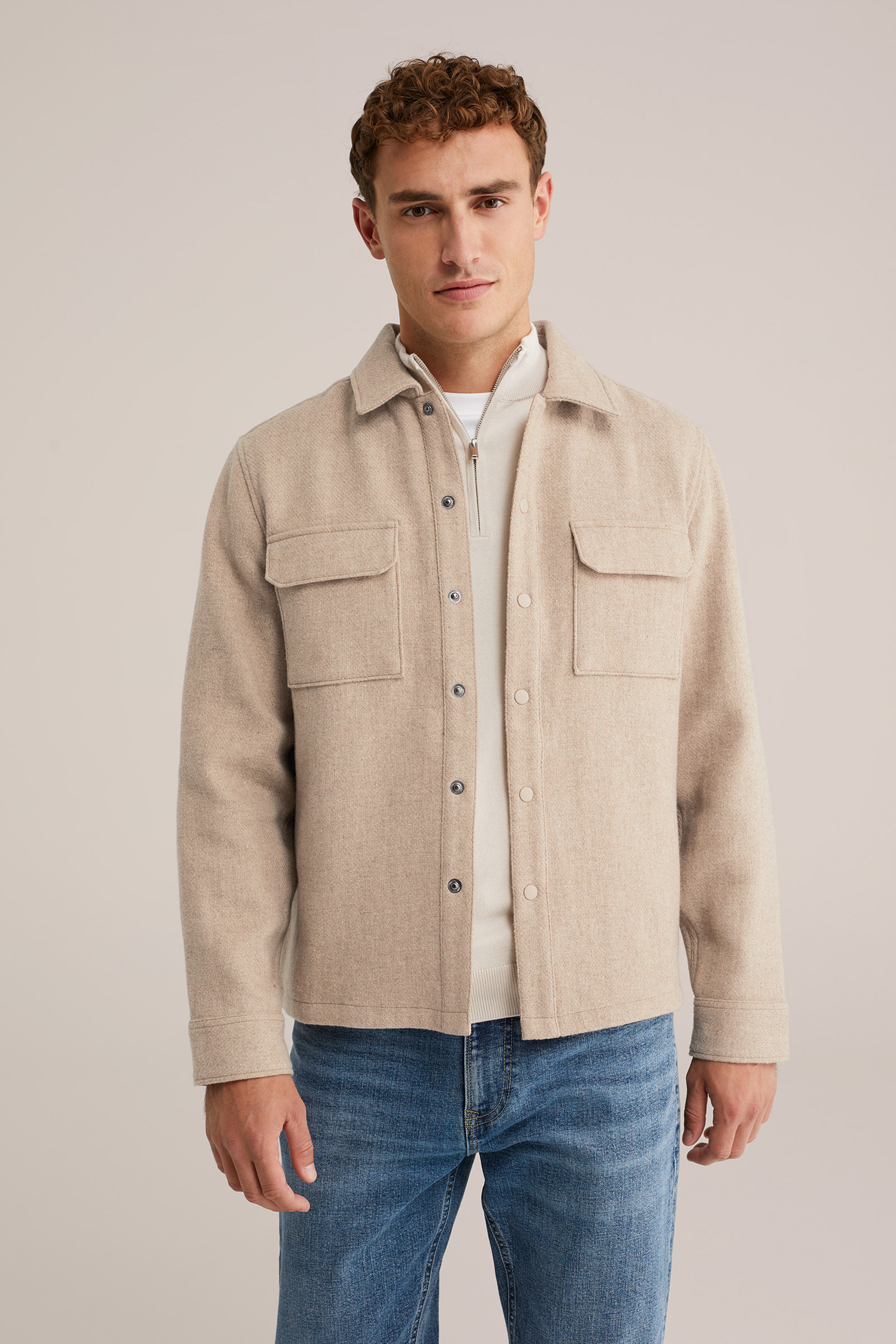 Heren regular fit overshirt van wolmix