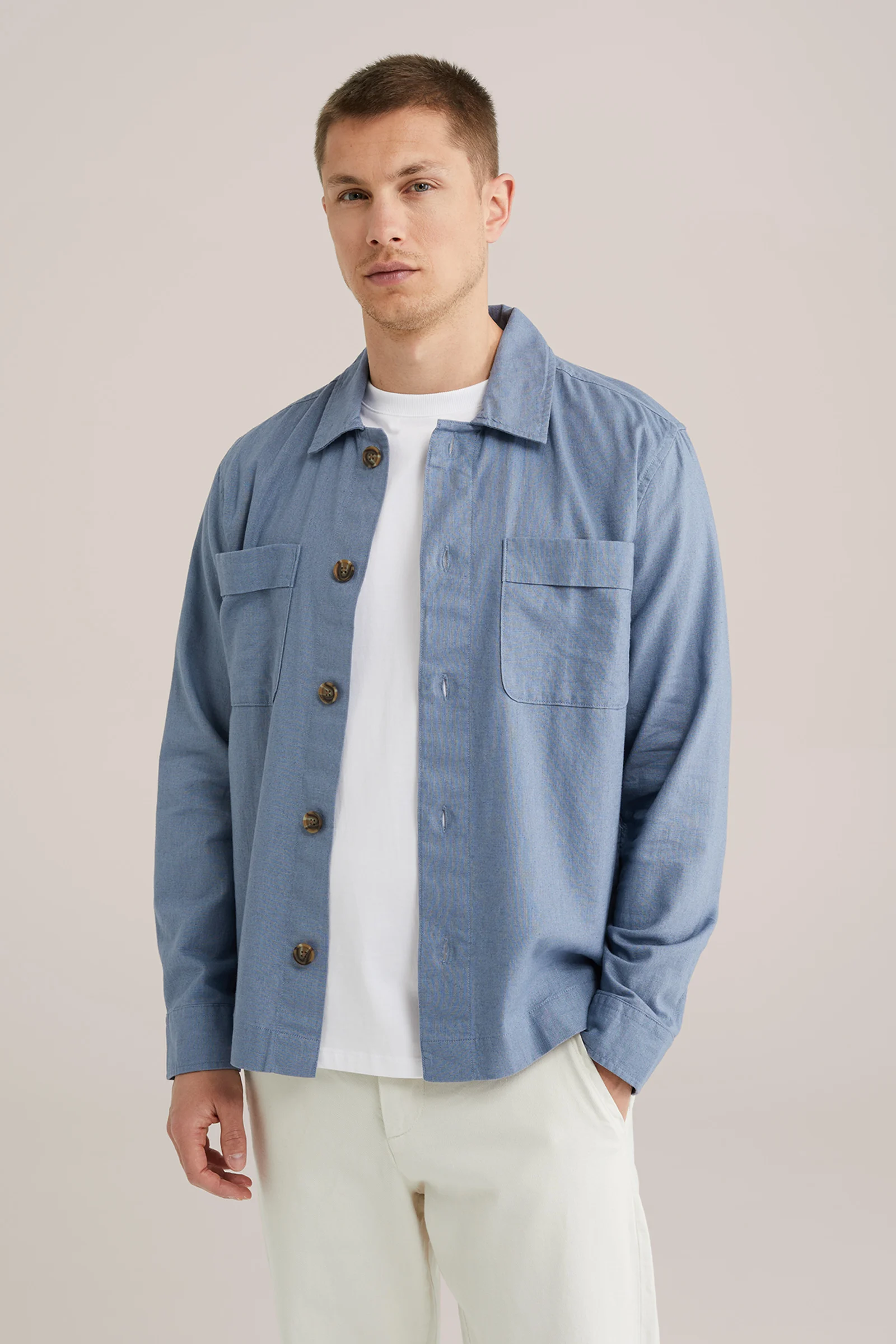 Heren Regular fit overshirt van linnenmix