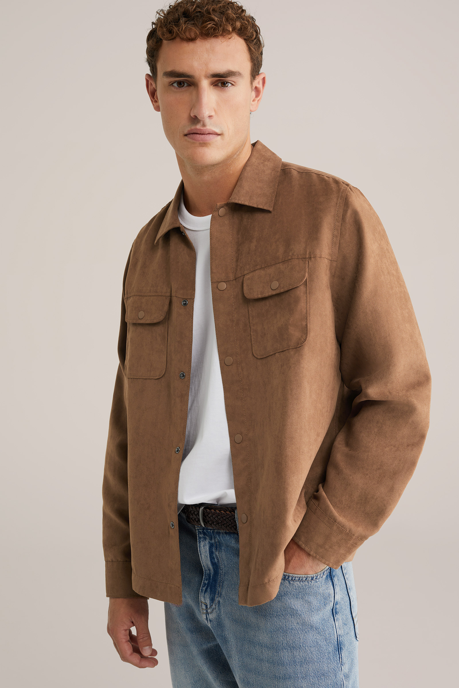 Heren regular fit overshirt van suèdelook