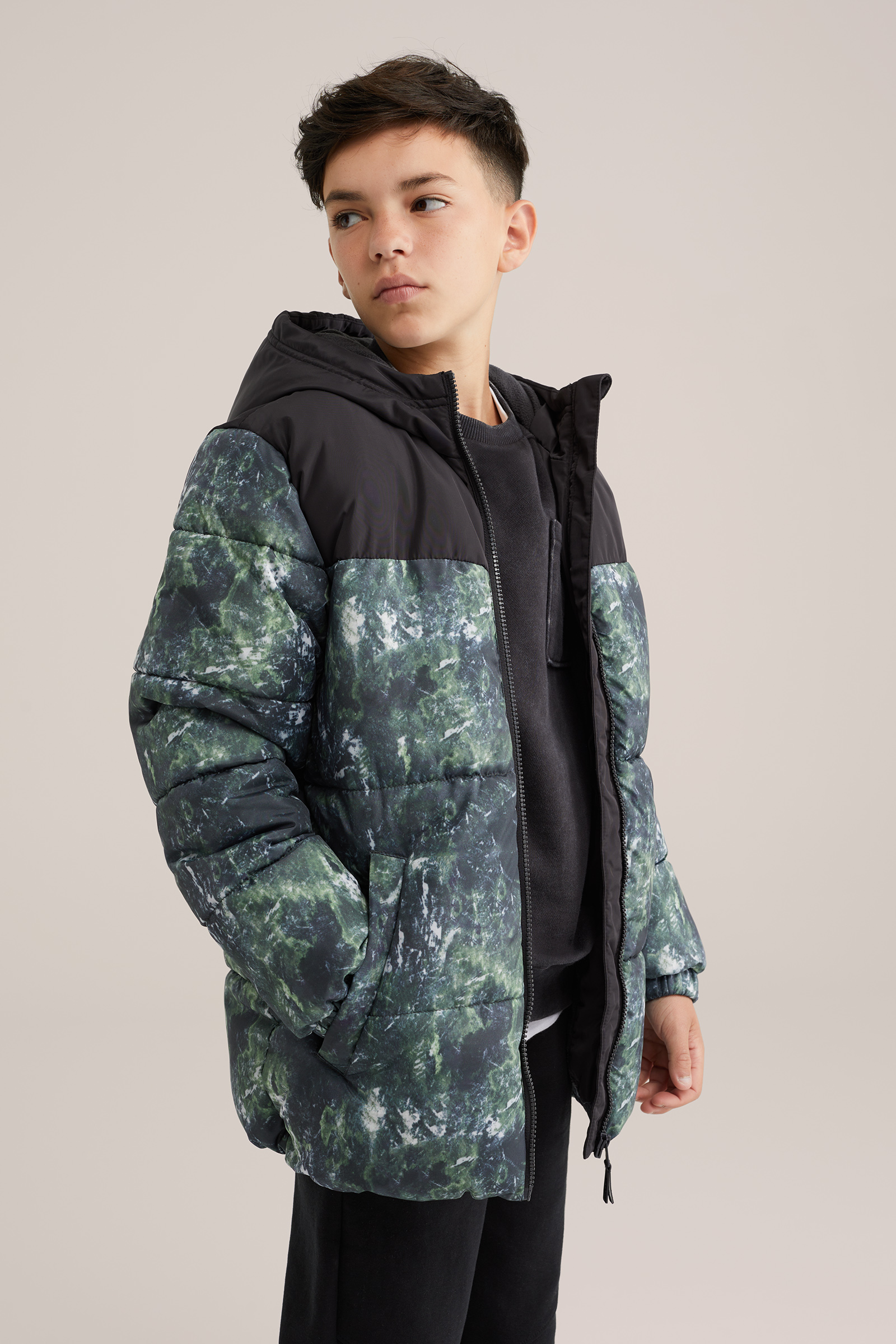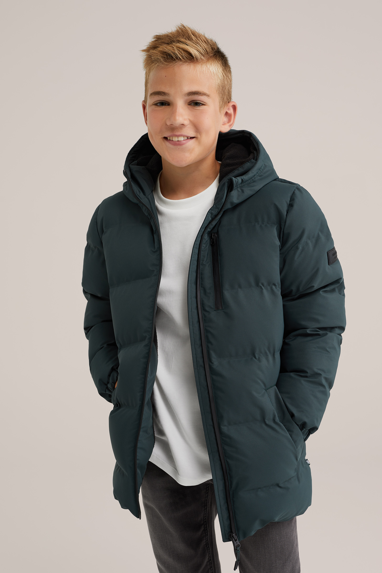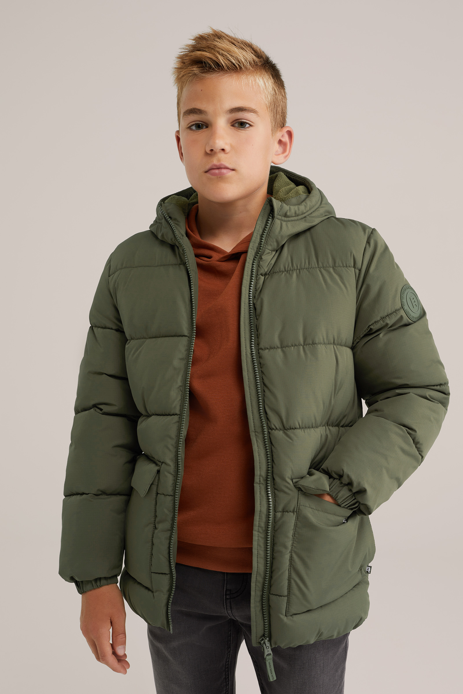 Jongens gewatteerde jas met capuchon