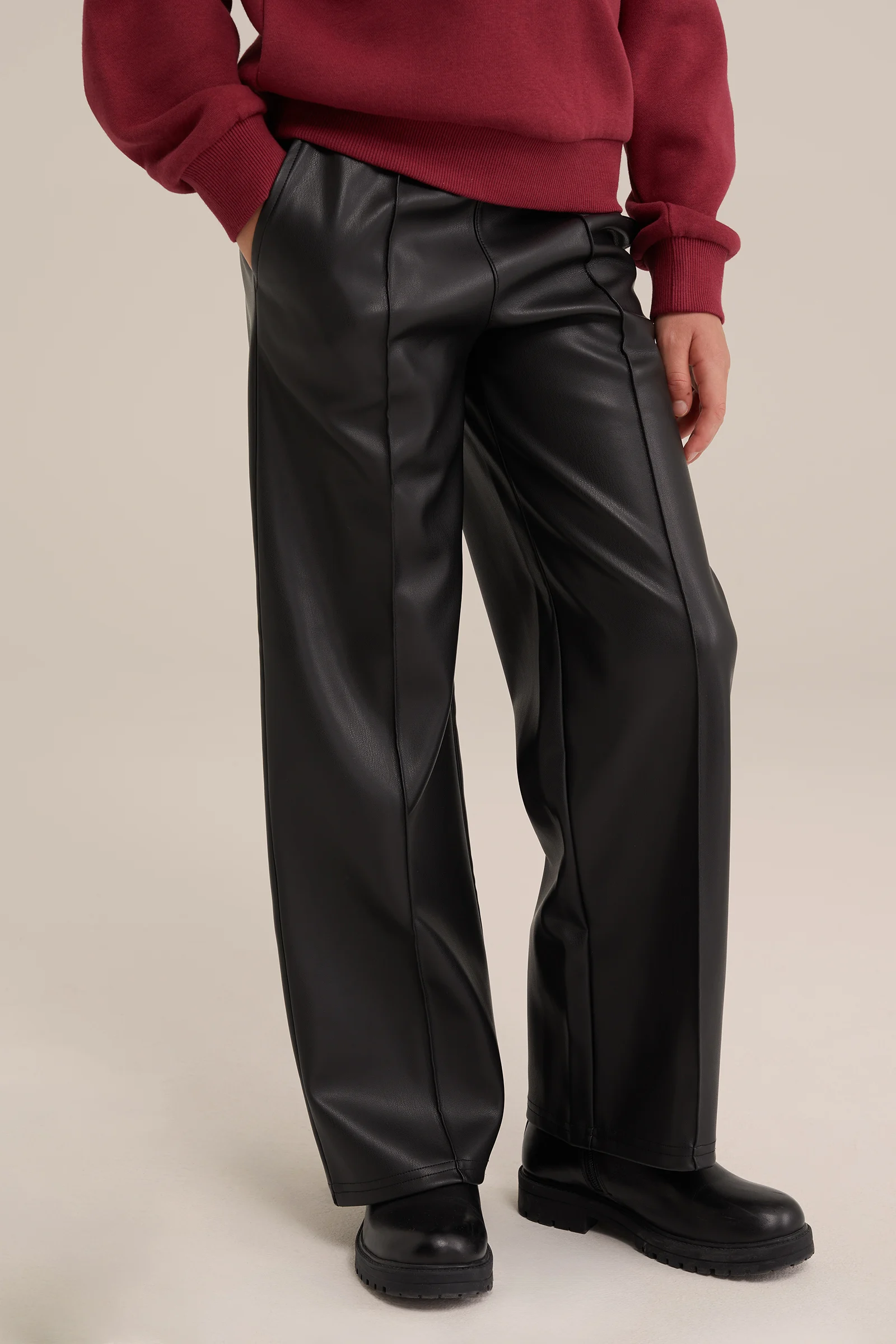 Meisjes straight fit broek van imitatieleer