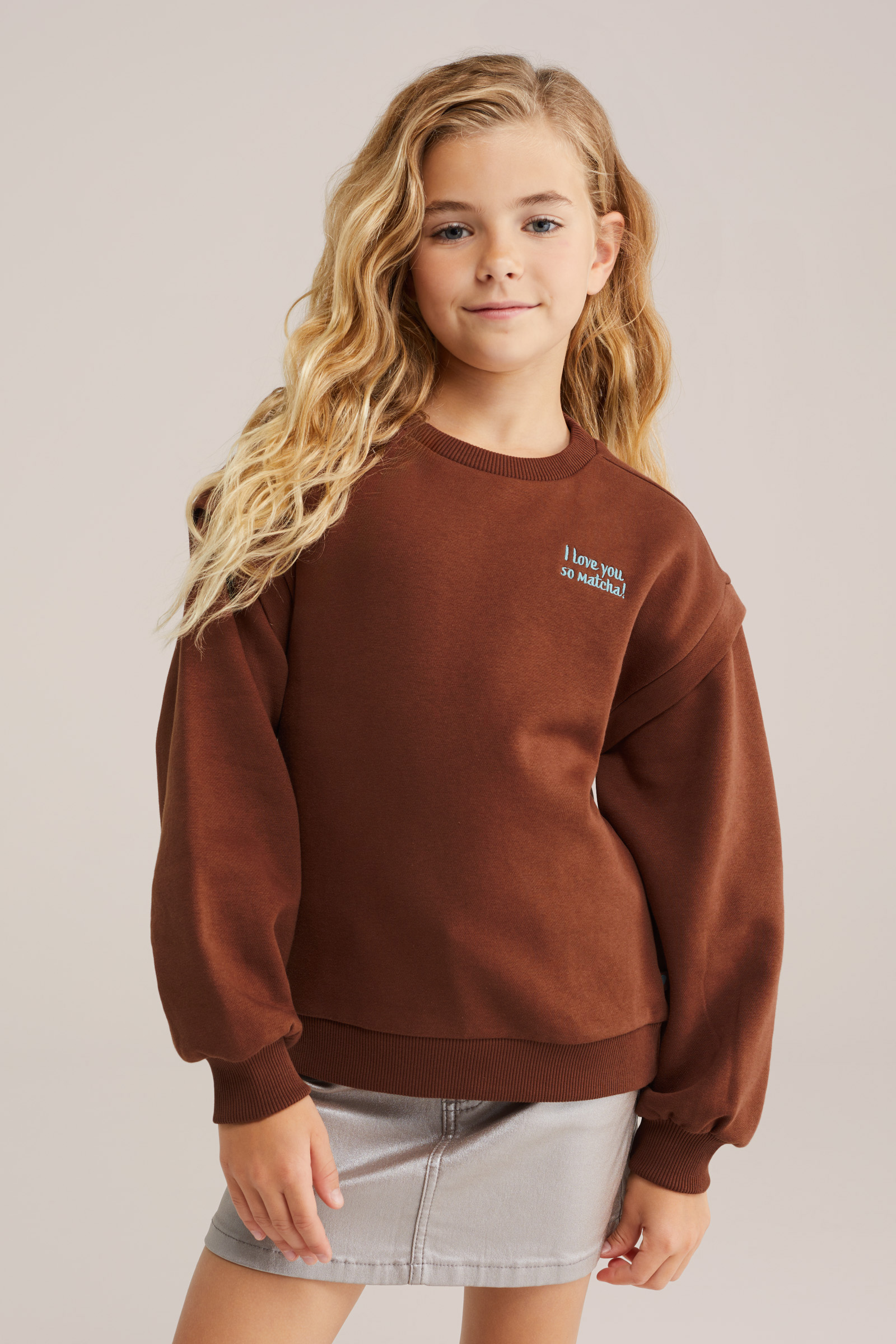 Meisjes oversized sweater met opdruk