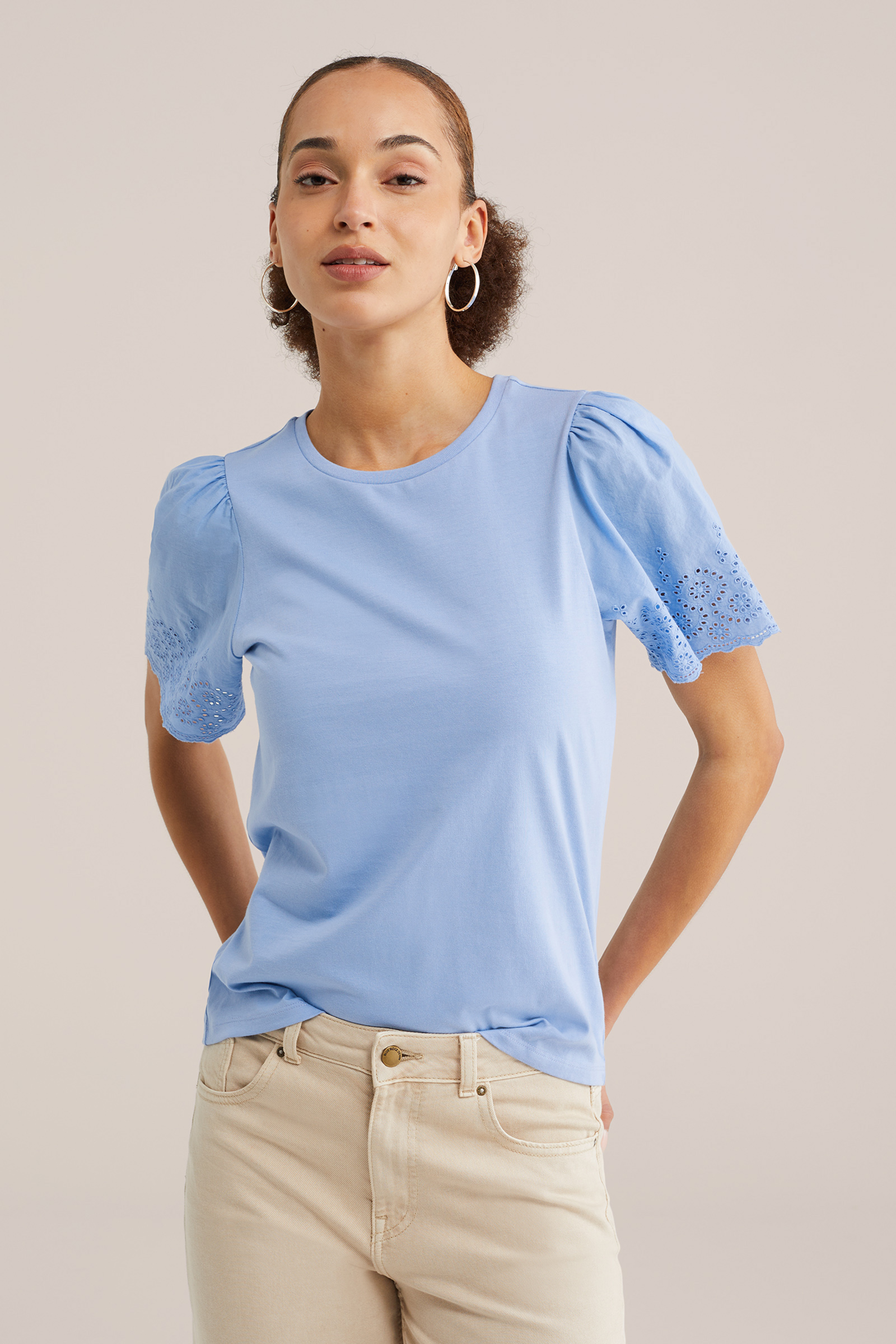 Dames T-shirt met broderie anglaise