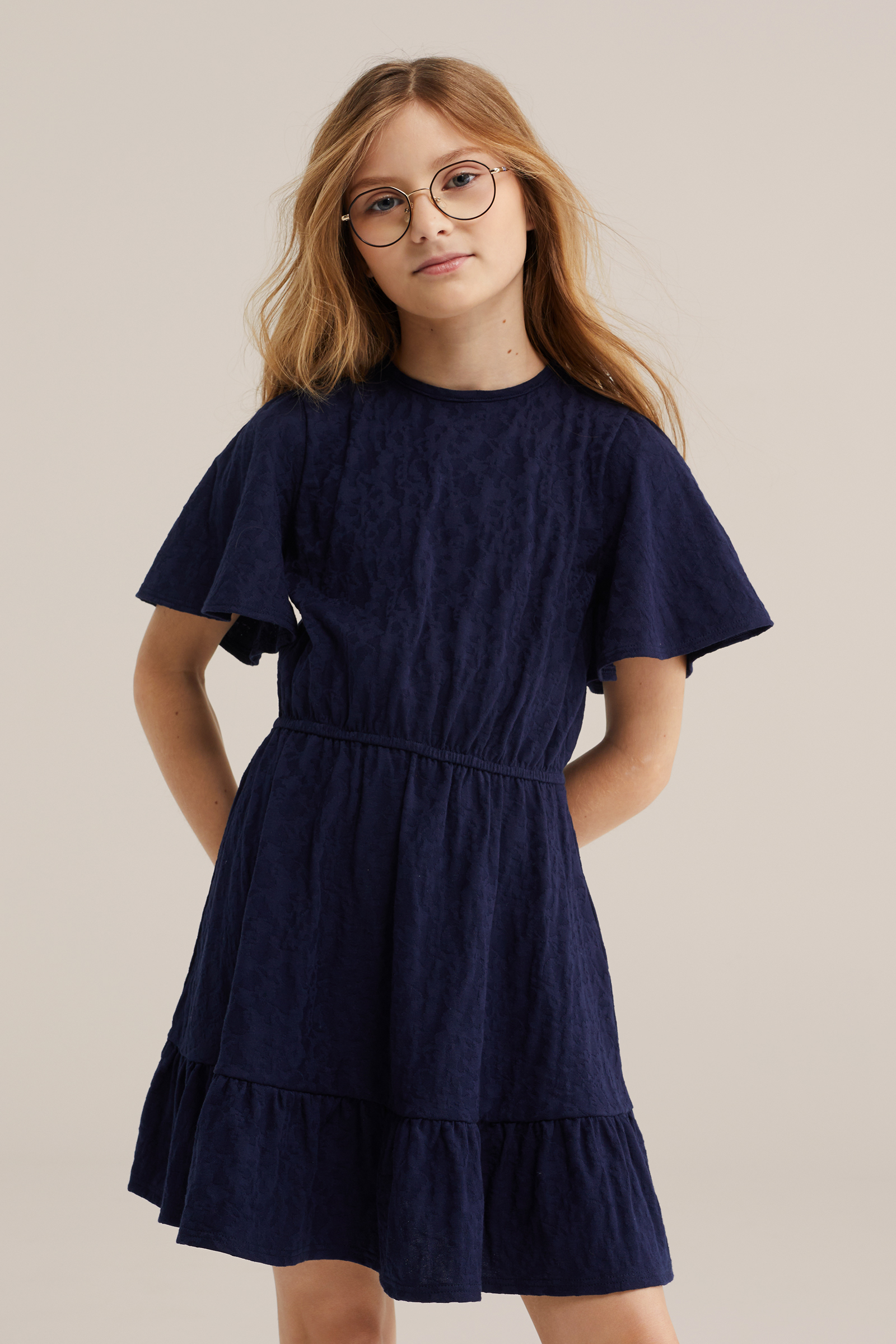 Meisjes jersey jurk met structuur