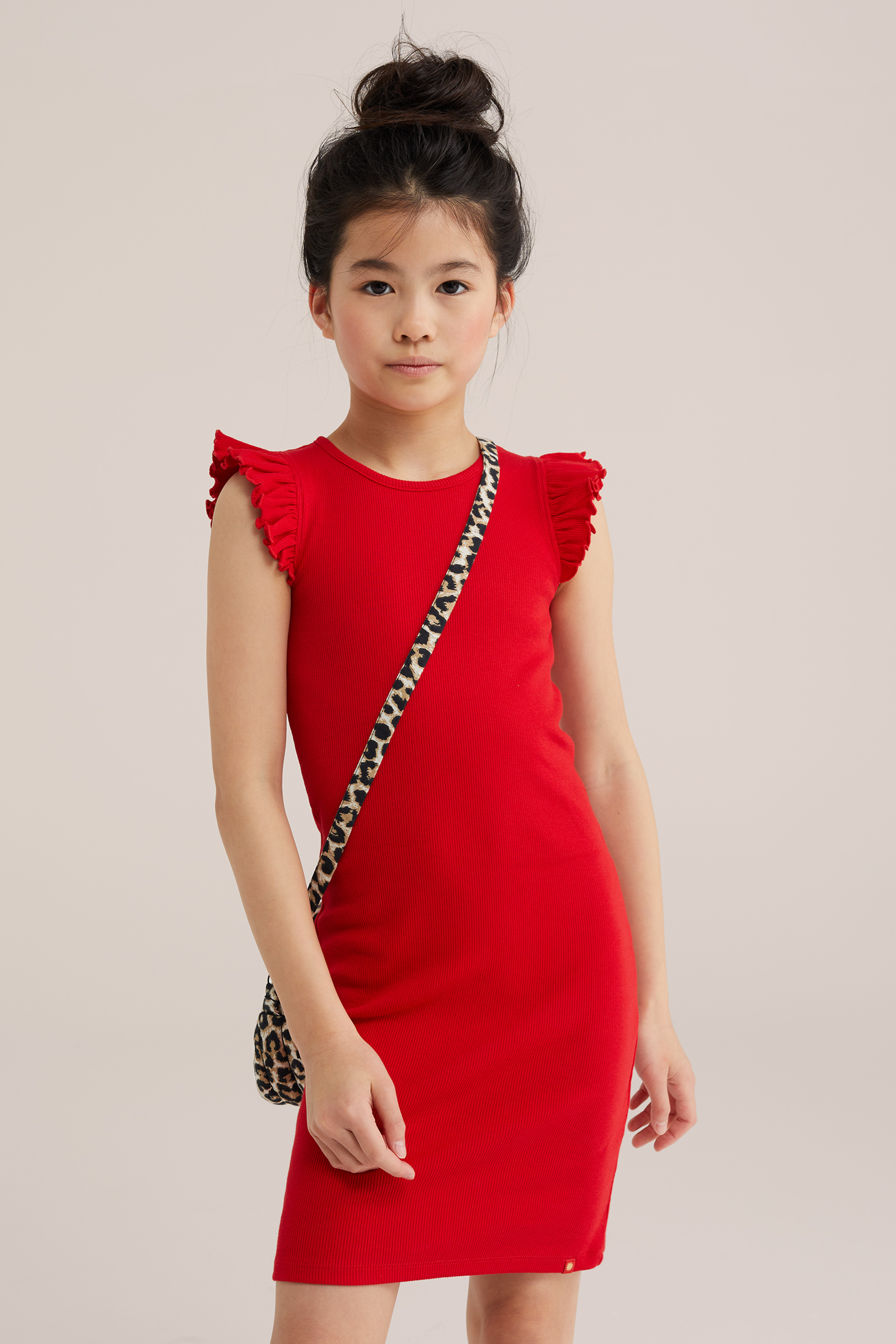 Meisjes jurk van ribstof met ruches
