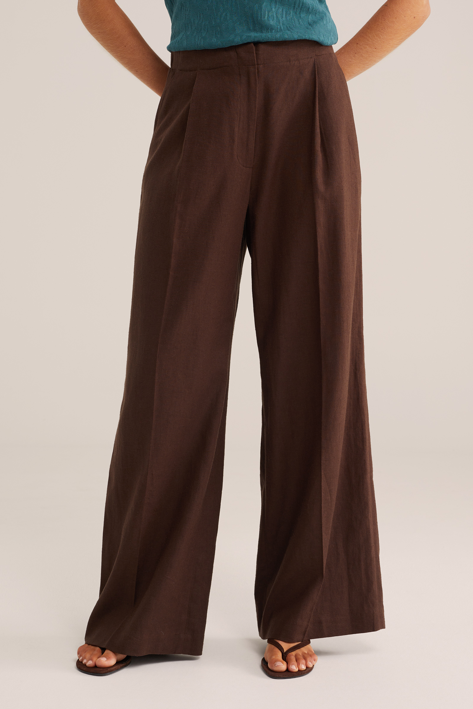 Dames regular fit pantalon van linnenmix