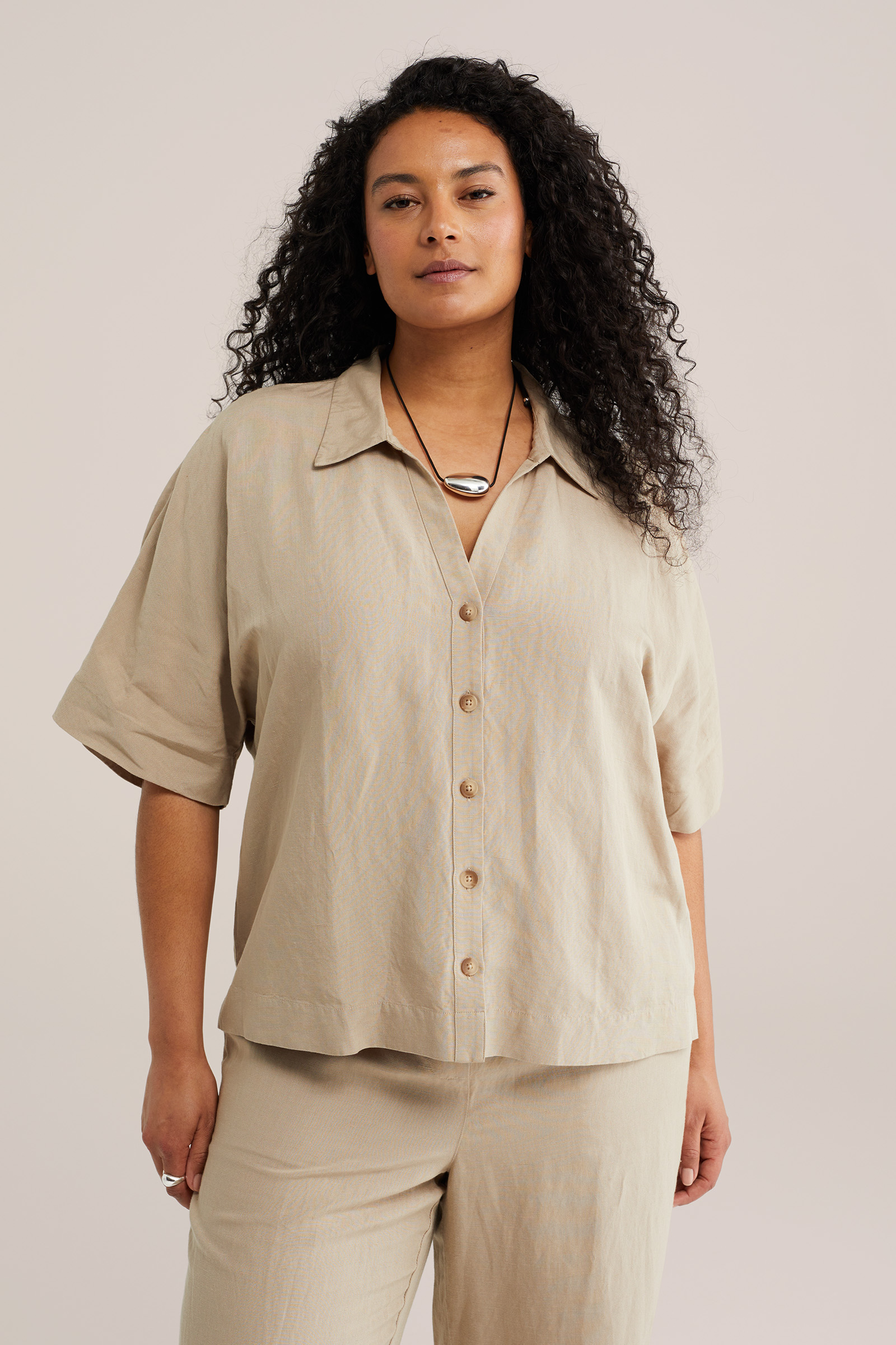 Dames blouse van linnenmix - Curve