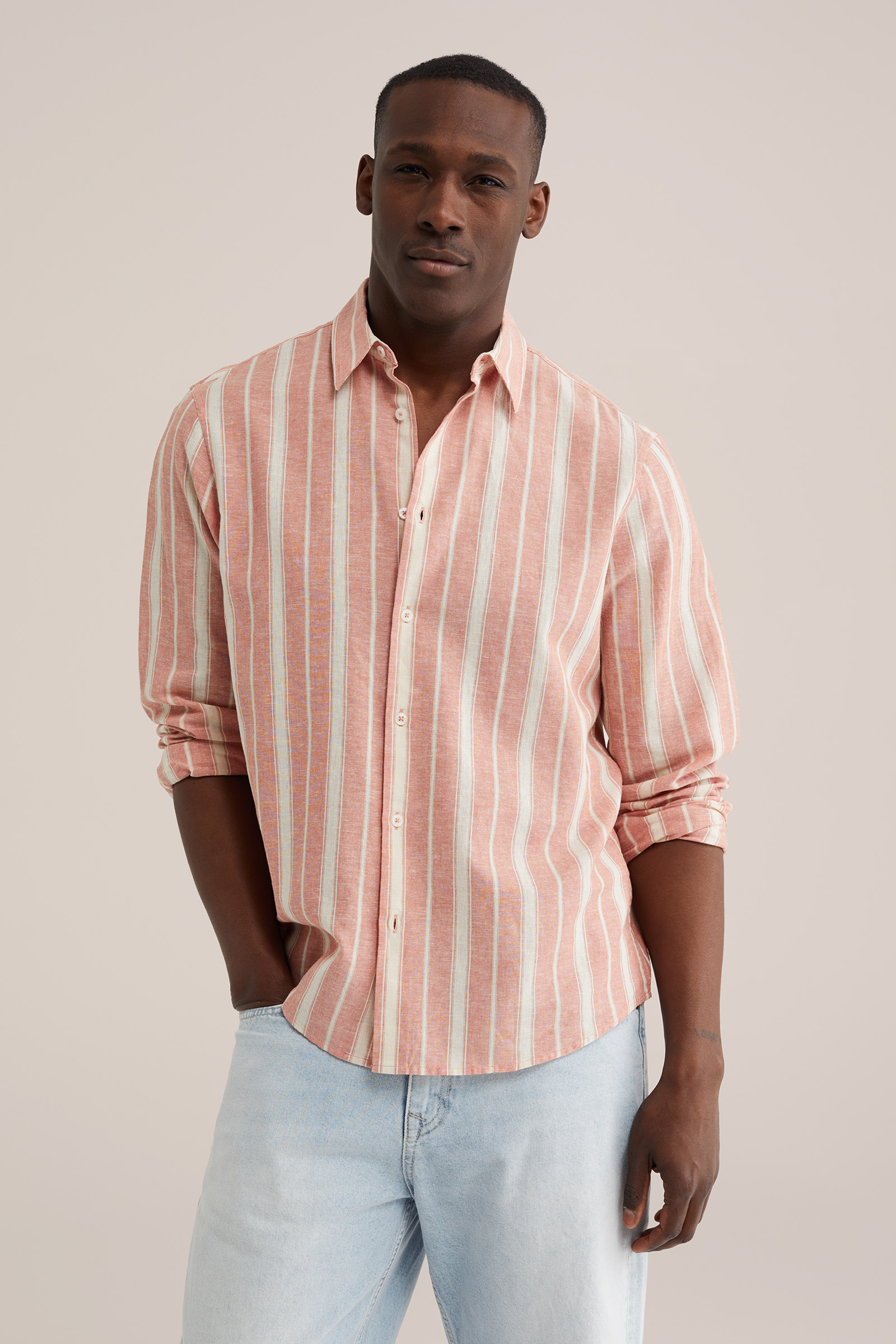 Heren regular fit overhemd van linnenmix