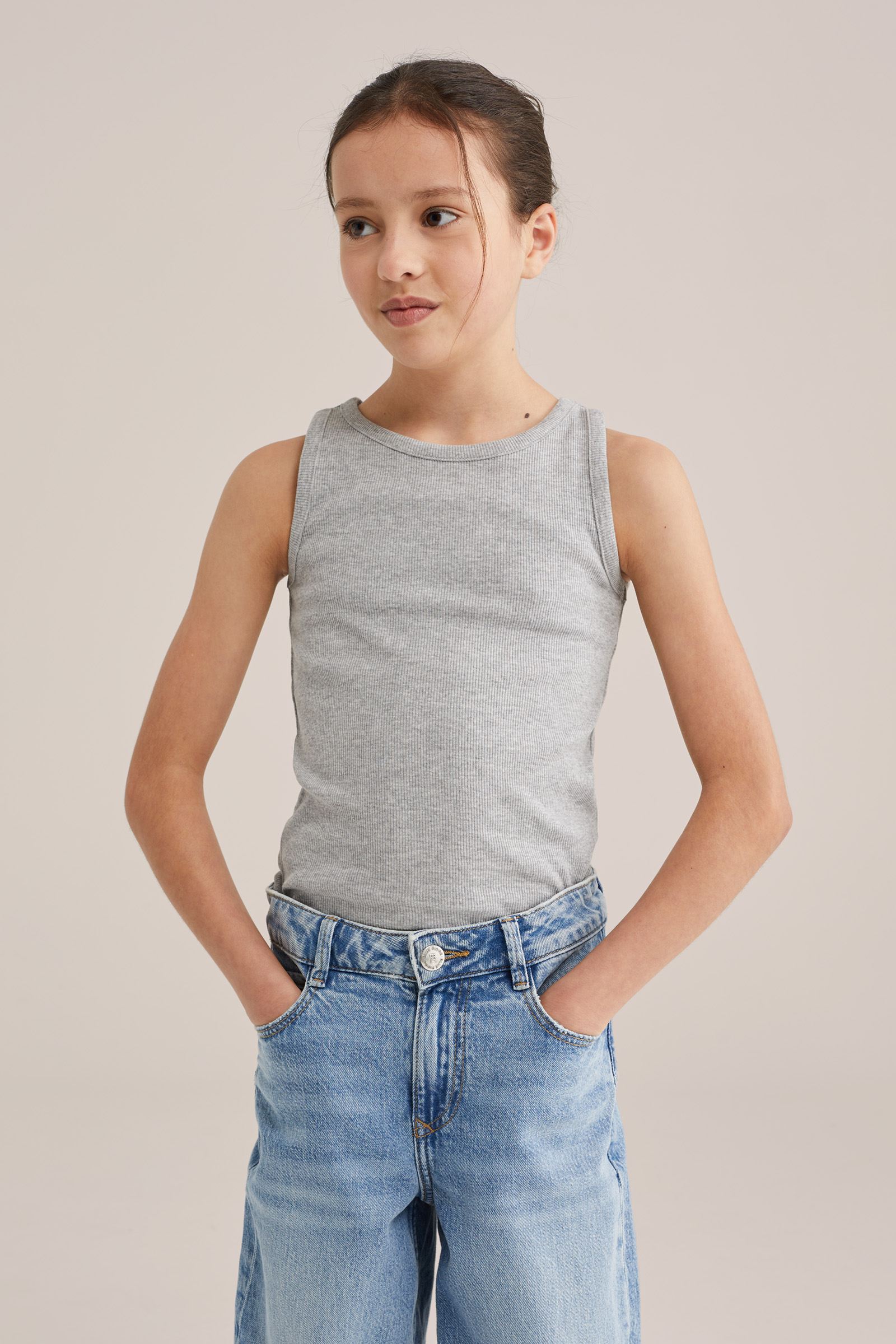Meisjes singlet van ribstof