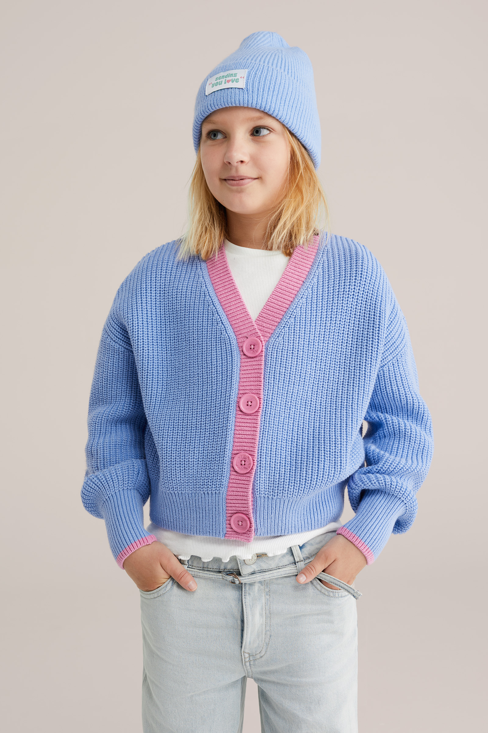 Meisjes gebreid vest met colourblock
