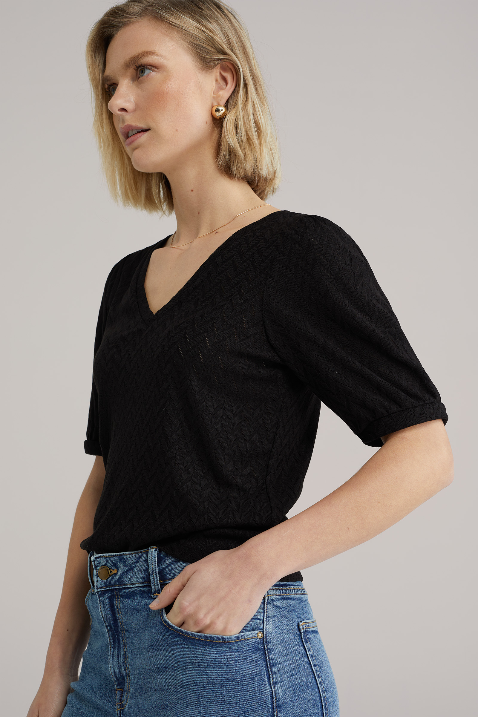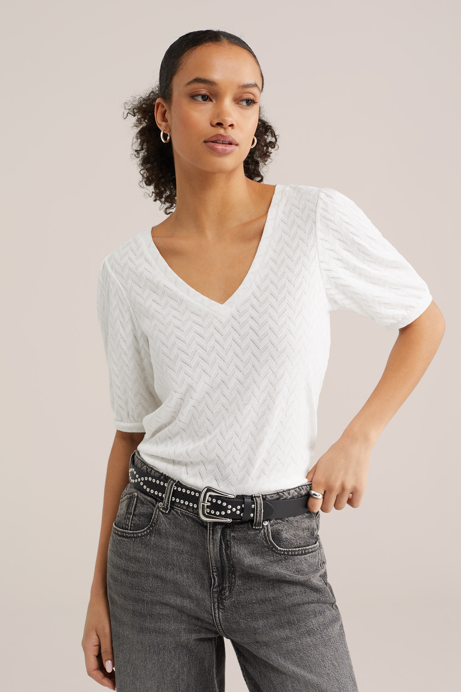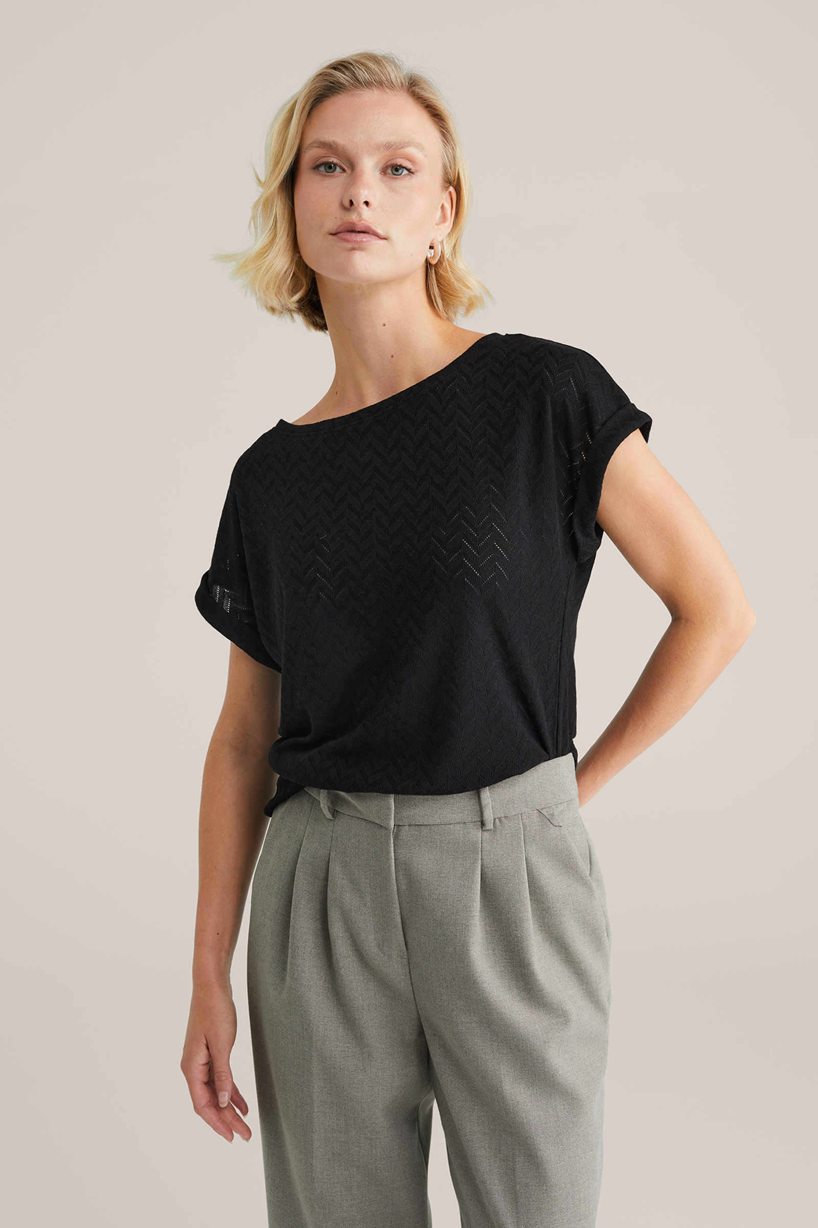 Dames T-shirt met opengewerkt structuur