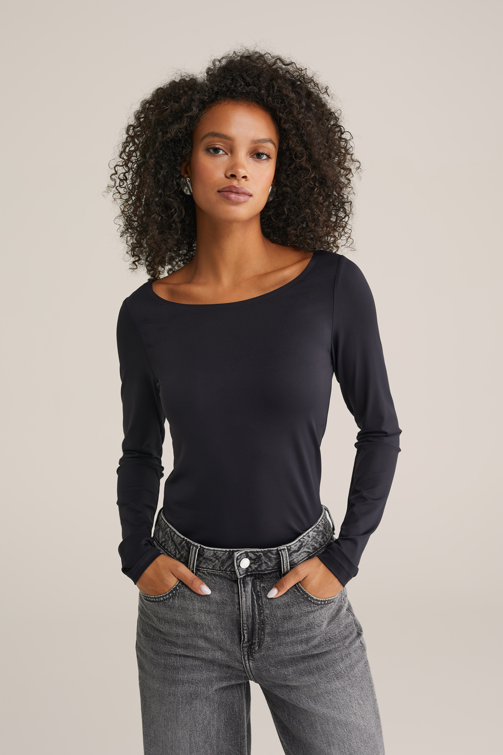 Dames T-shirt met boothals- Curve