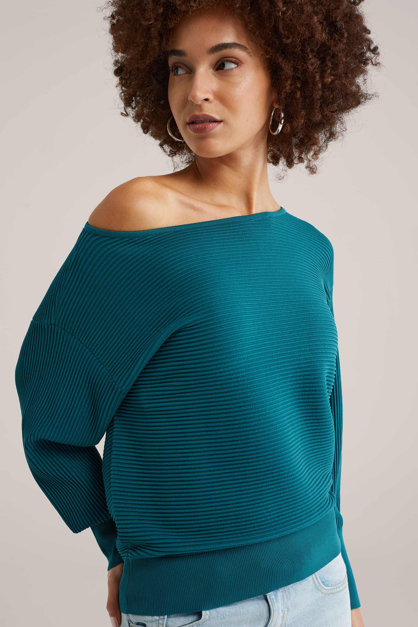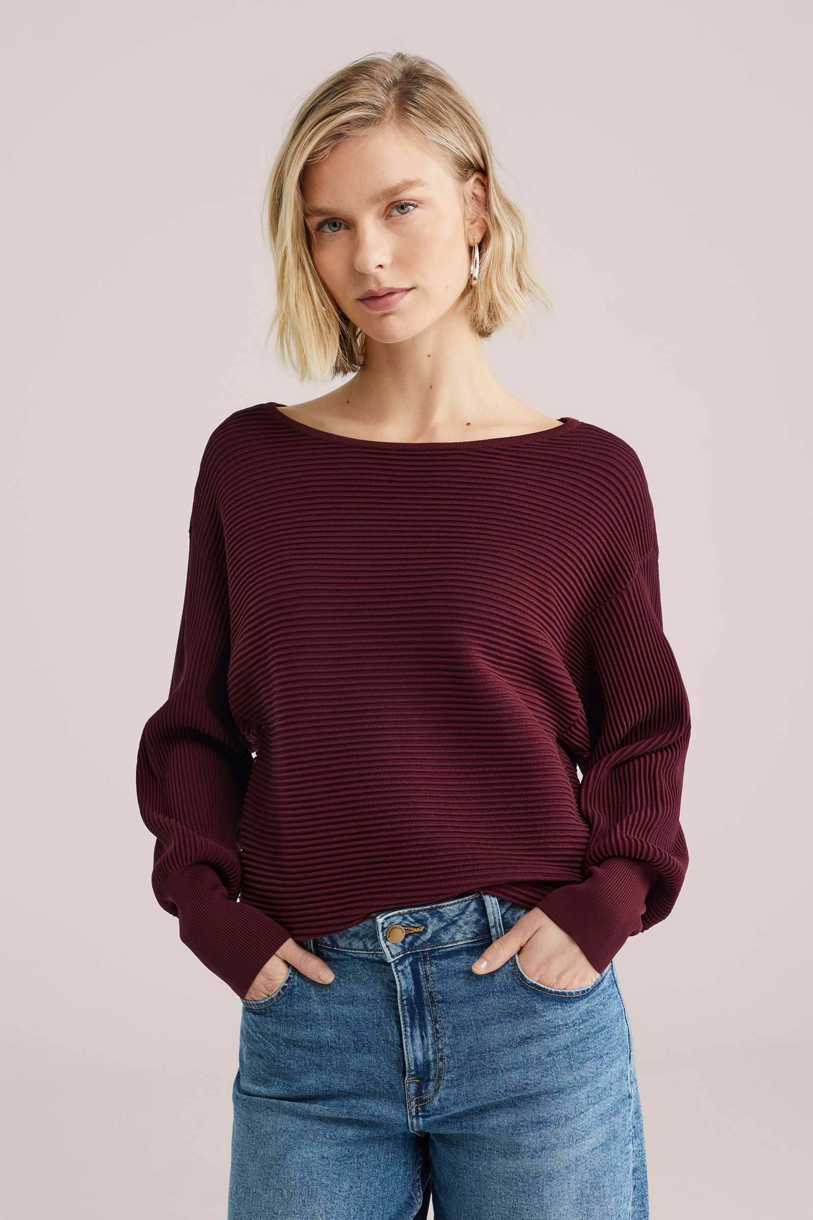 Dames trui met structuur en pofmouwen