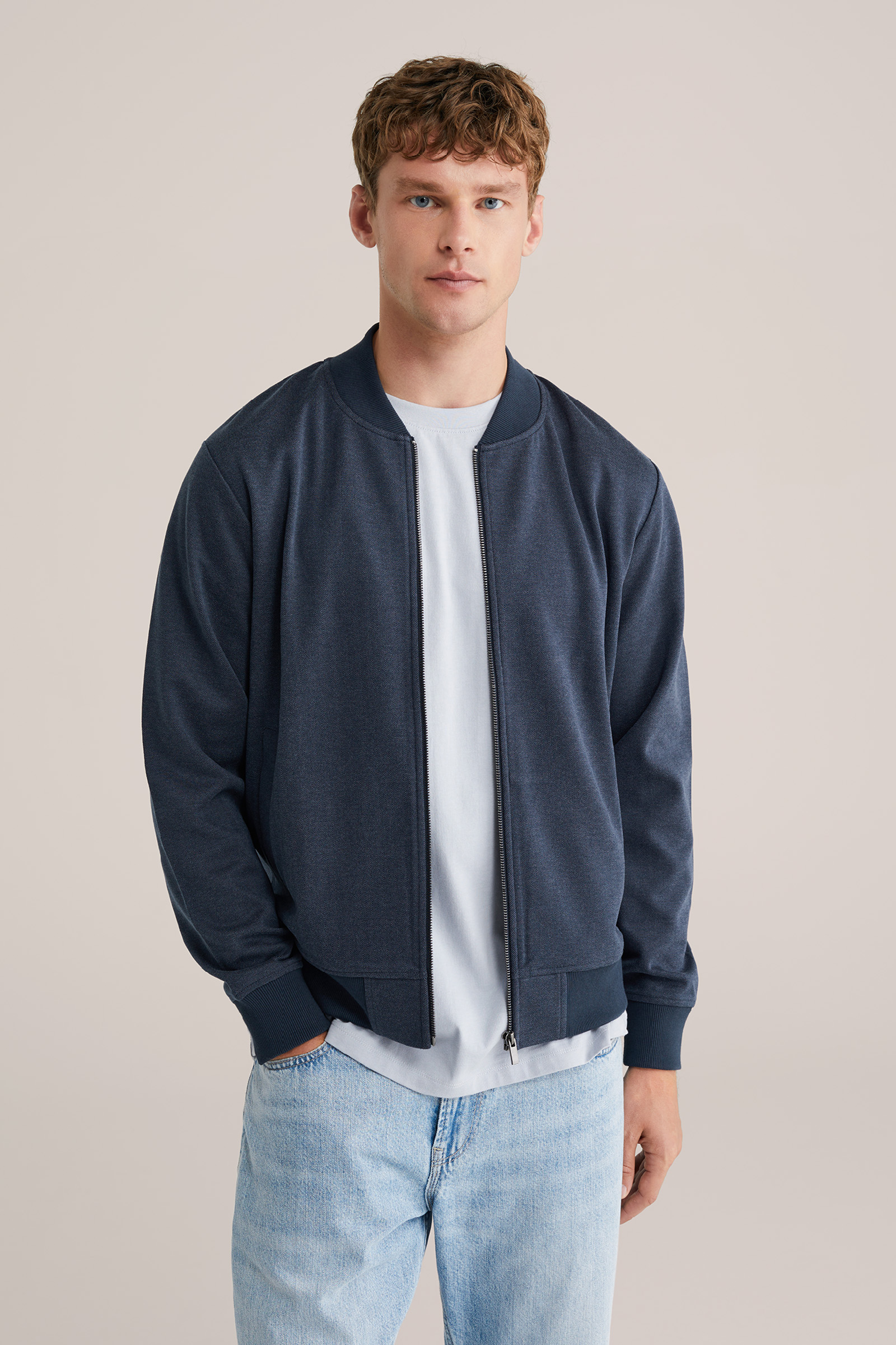 Heren Regular fit bomber met visgraat patroon