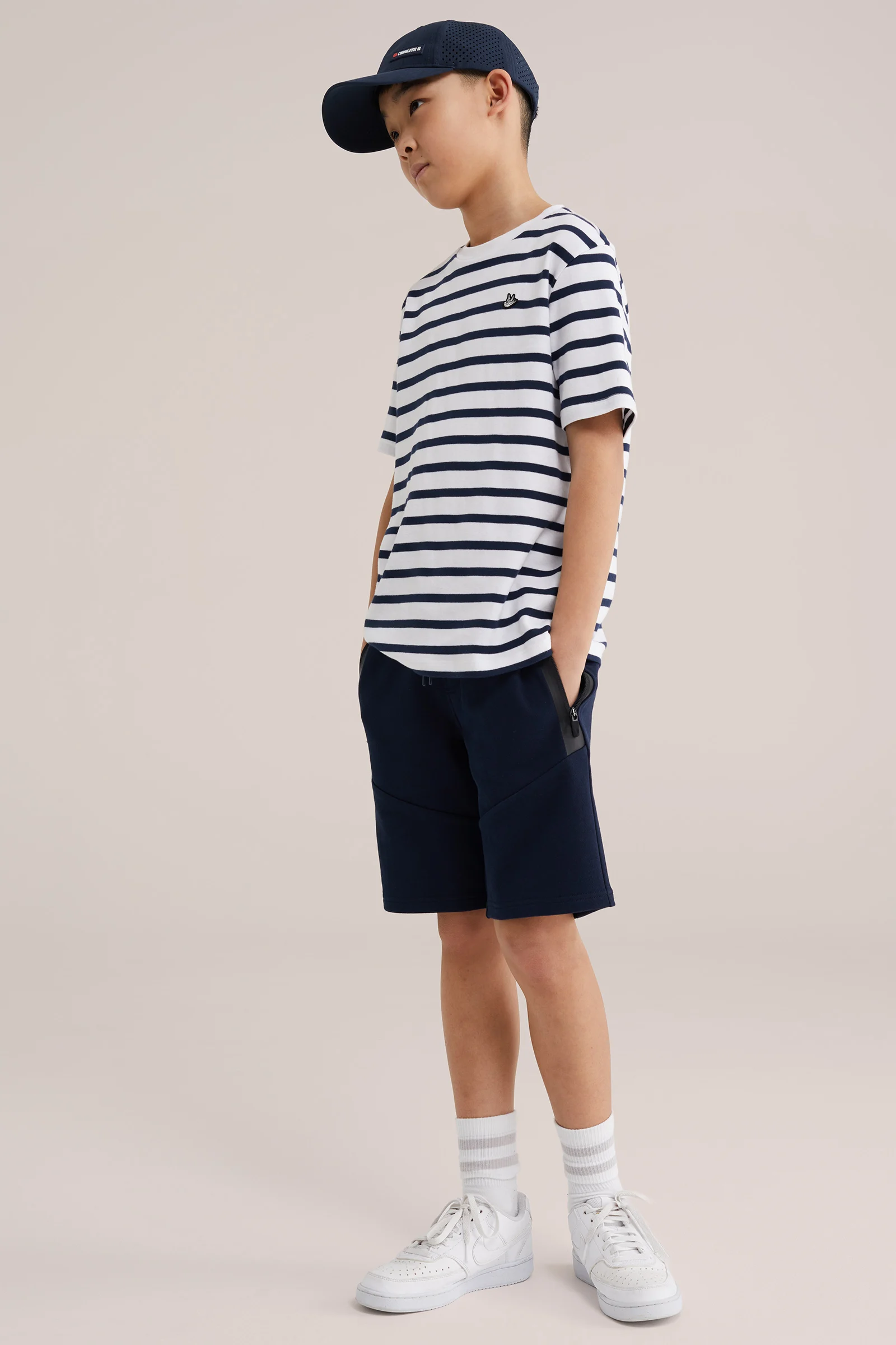 Jongens regular fit sweatshort met streep