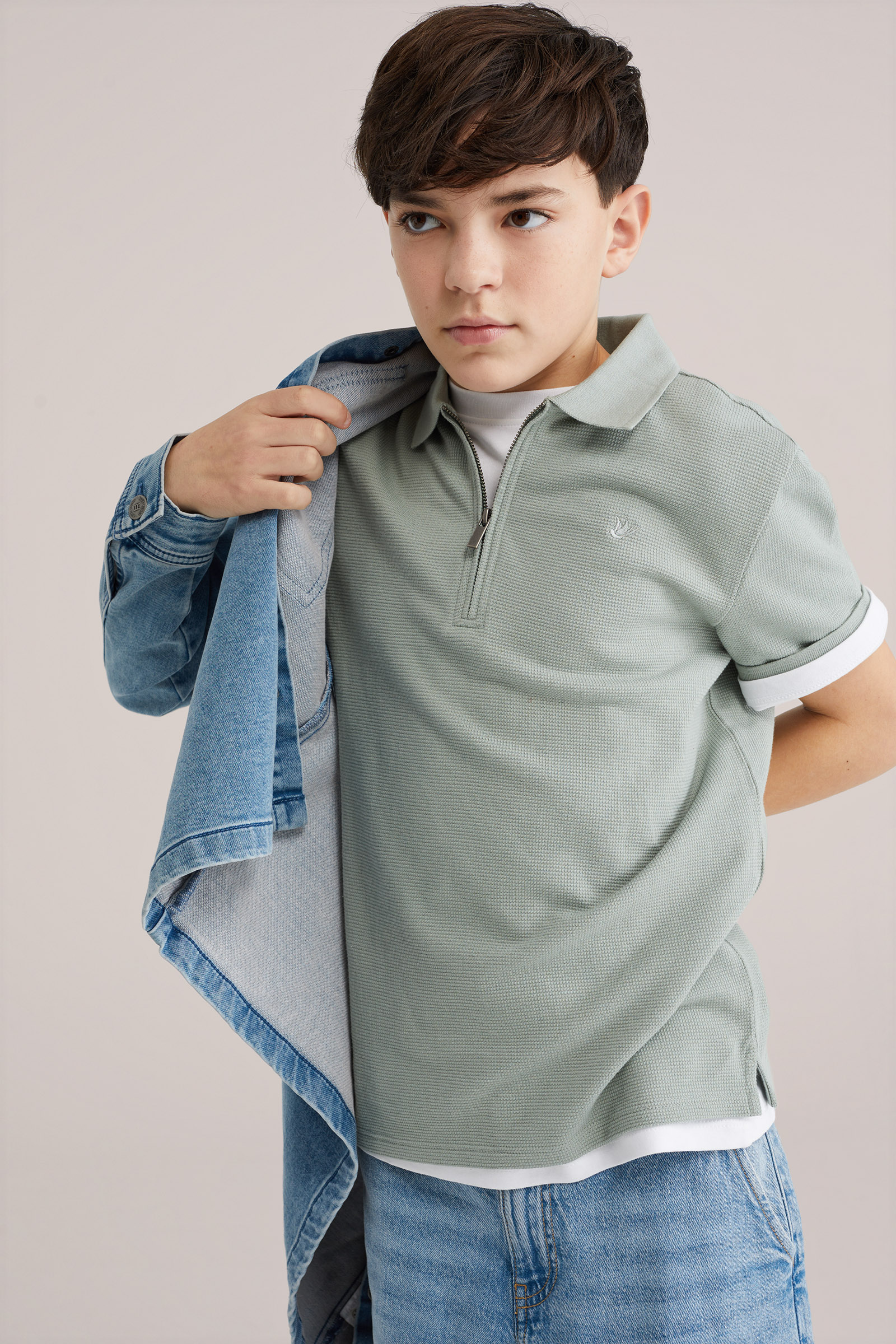 Jongens polo met quarter-zip en structuur